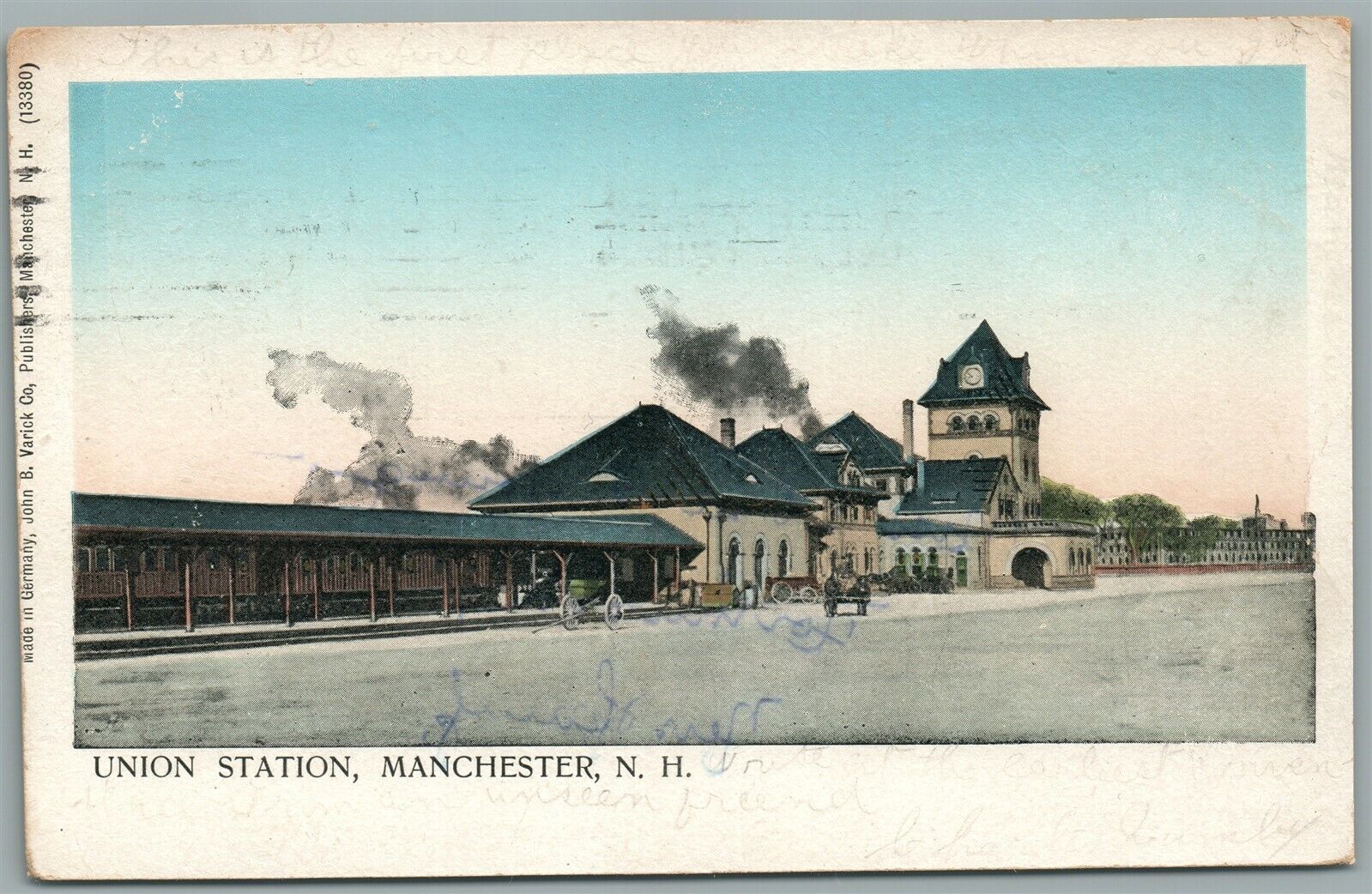 MANCHESTER NH UNION RAILROAD STATION RAILWAY TRAIN DEPOT 1906 ANTIQUE POSTCARD