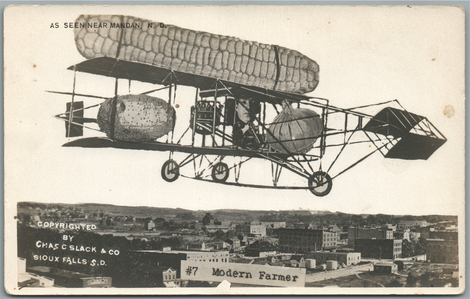 MANDAN SD BIRDSEYE VIEW AIRPLANE COLLAGE ANTIQUE REAL PHOTO POSTCARD RPPC