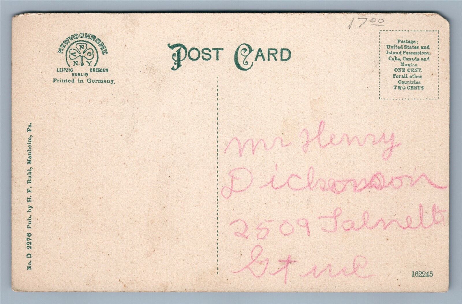 MANHEIM PA LUTHERAN ROSE CHURCH ANTIQUE POSTCARD