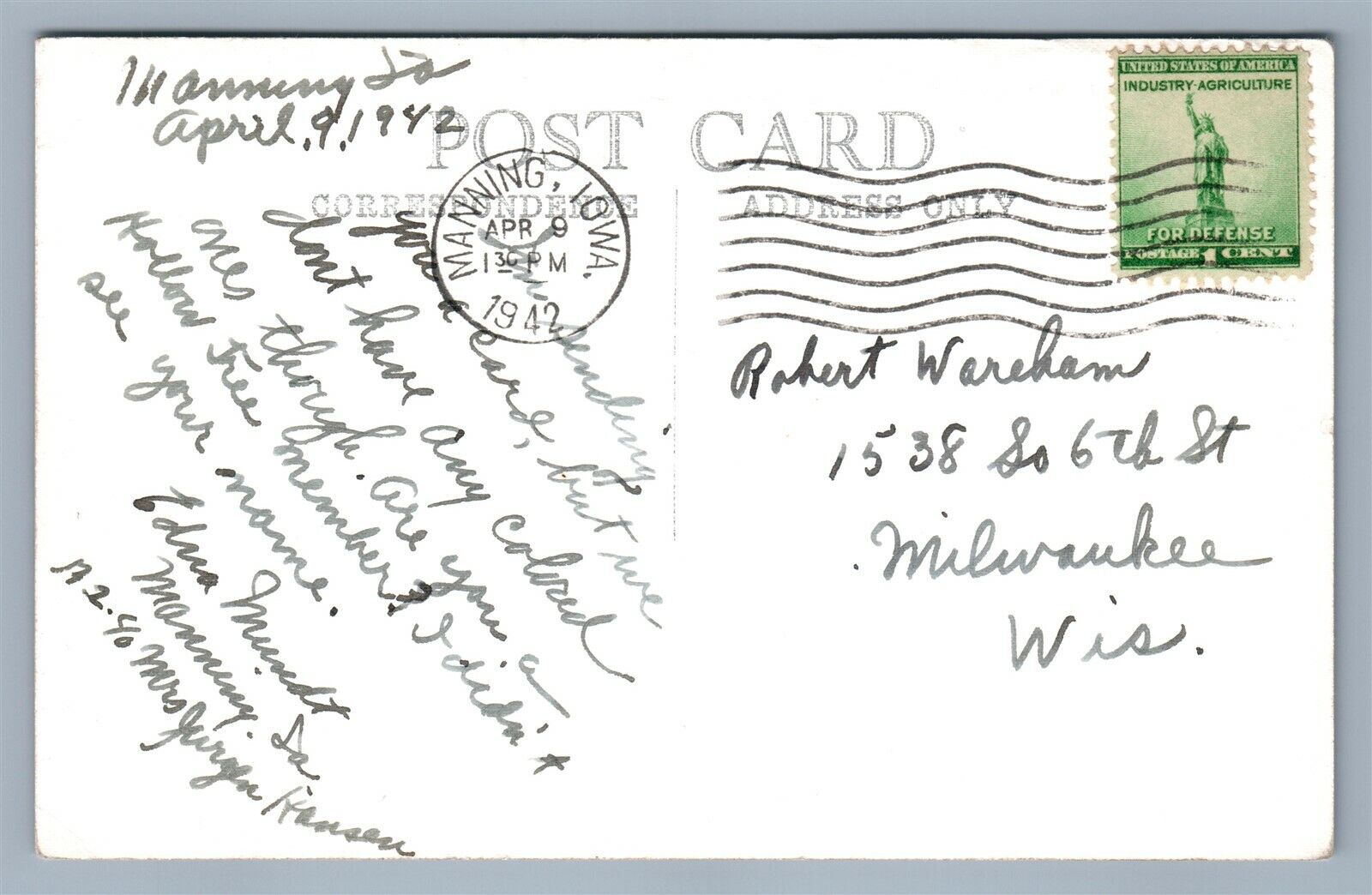 MANNING IA BROWN McDONALD 1942 VINTAGE REAL PHOTO POSTCARD RPPC
