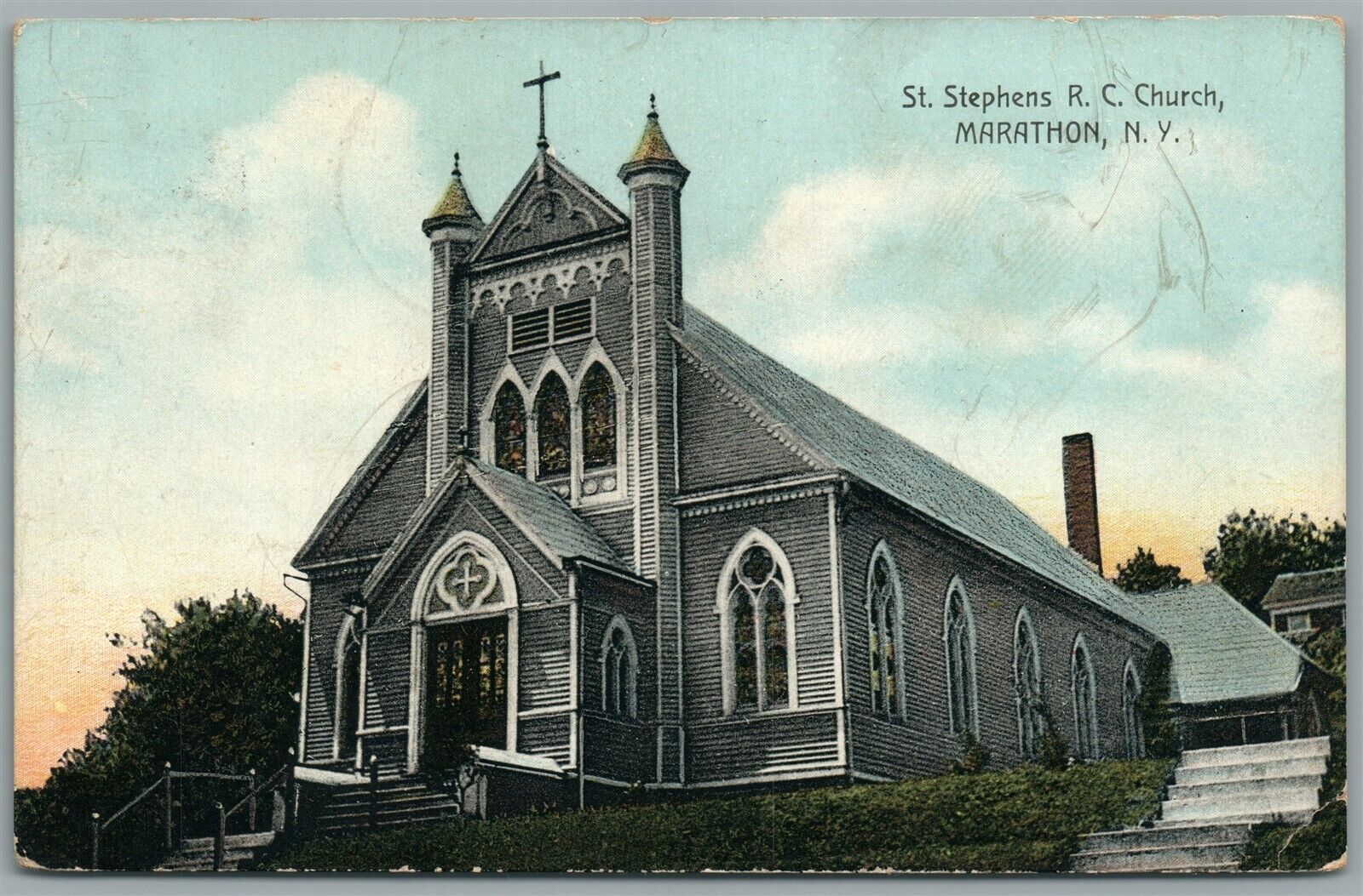 MARATHON NY ST. STEPHENS R.C. CHURCH ANTIQUE POSTCARD