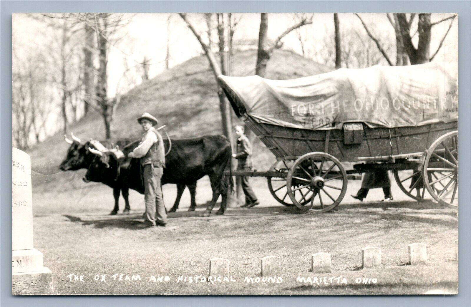 MARIETTA OH OX TEAM & HISTORICAL MOUND VINTAGE REAL PHOTO POSTCARD RPPC