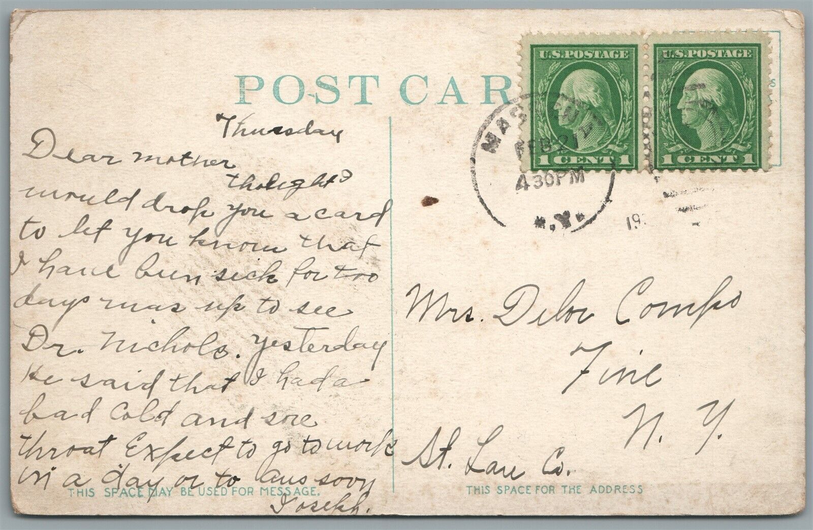 MASSENA NY MAIN STREET ANTIQUE POSTCARD