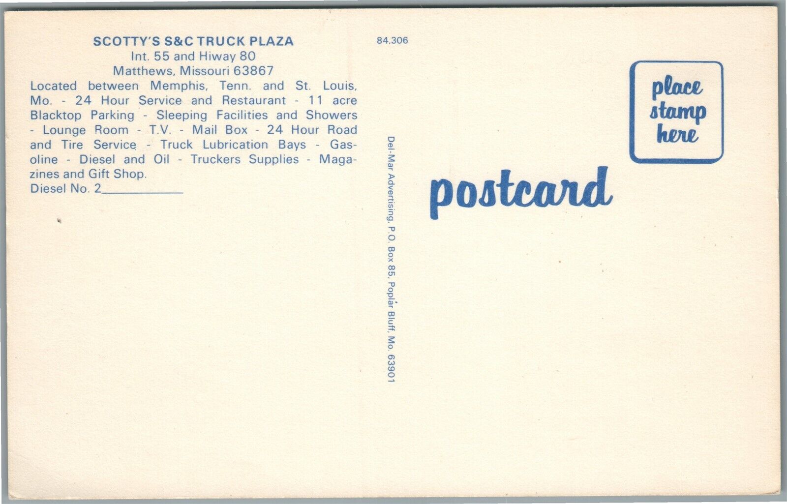 MATTHEWS MO GAS STATION SCOTTY'S S & C TRUCK PLAZA VINTAGE POSTCARD