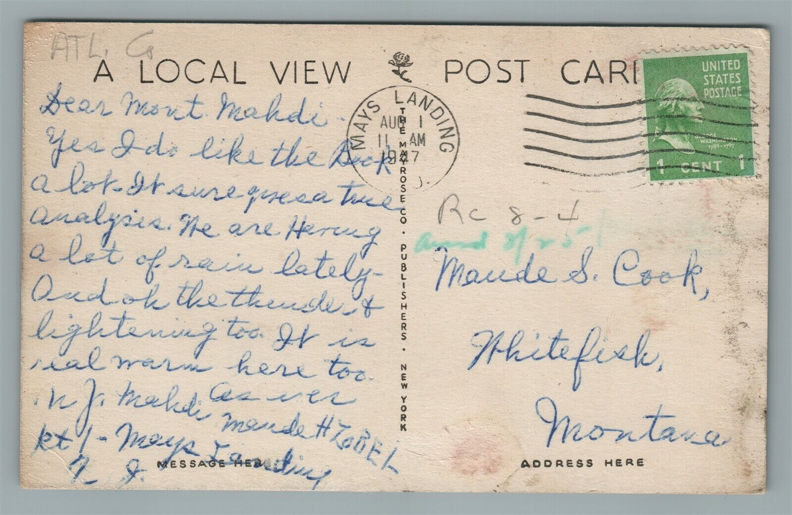 MAY'S LANDING NJ JOHN UNDERHILL MEMORIAL PARK VINTAGE POSTCARD