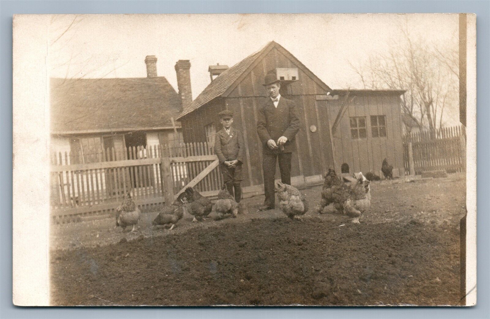 MEN w/ CHICKENS FARMING VINTAGE REAL PHOTO POSTCARD RPPC