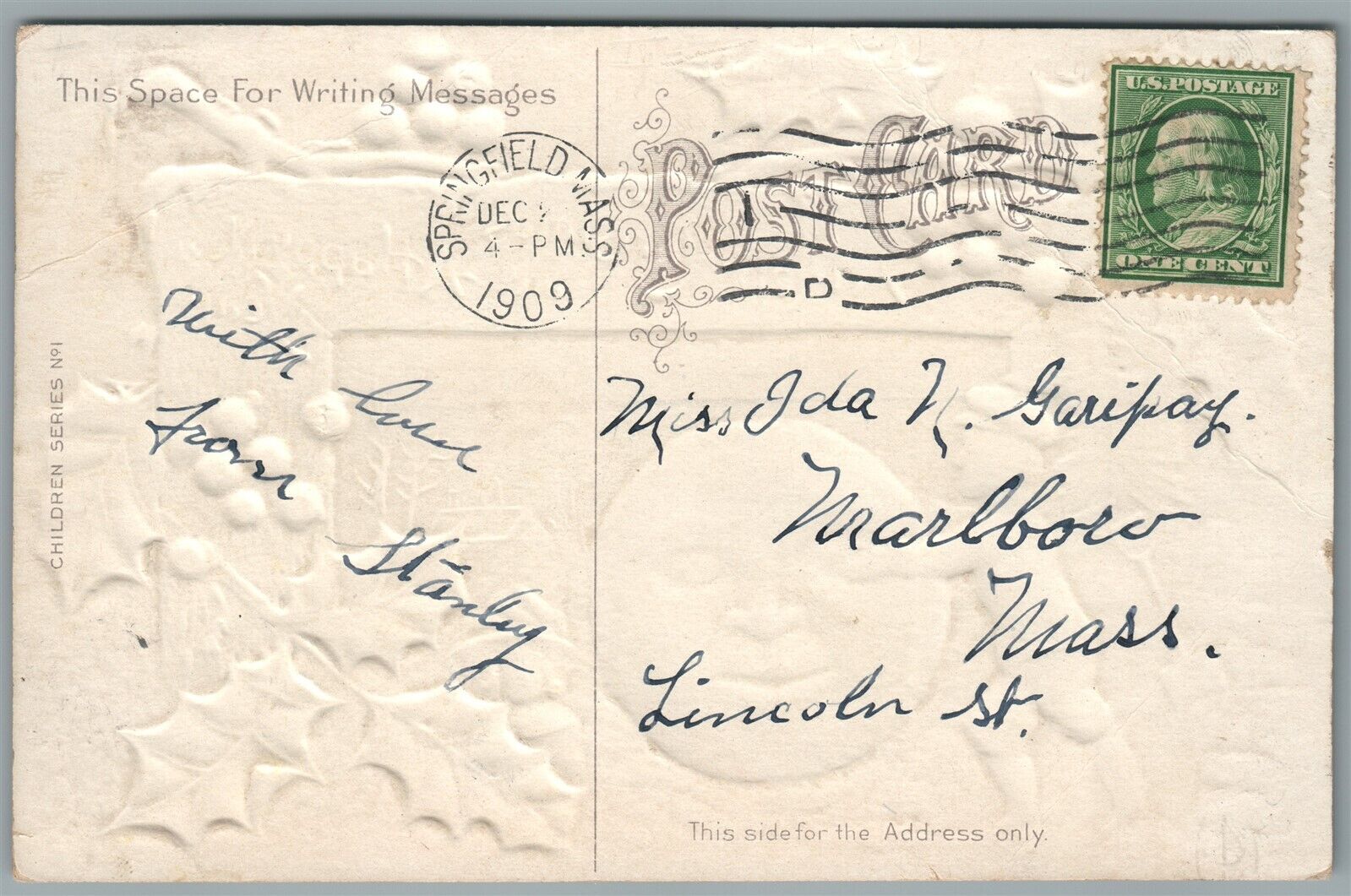 MERRY CHRISTMAS & HAPPY NEW YEAR ANTIQUE POSTCARD