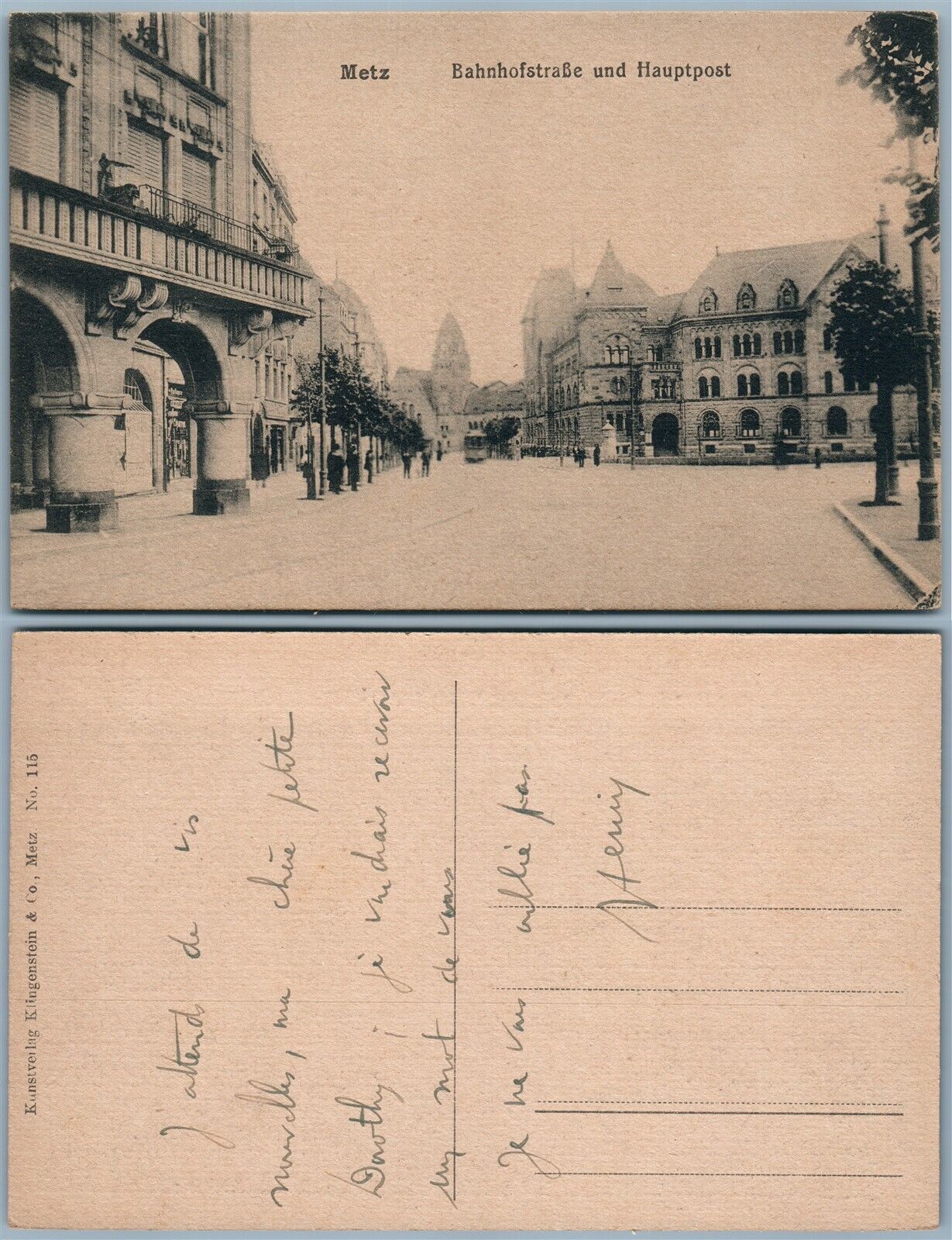 METZ BAHNHOFSTRASSE UND HAUPTPOST GERMANY ANTIQUE POSTCARD