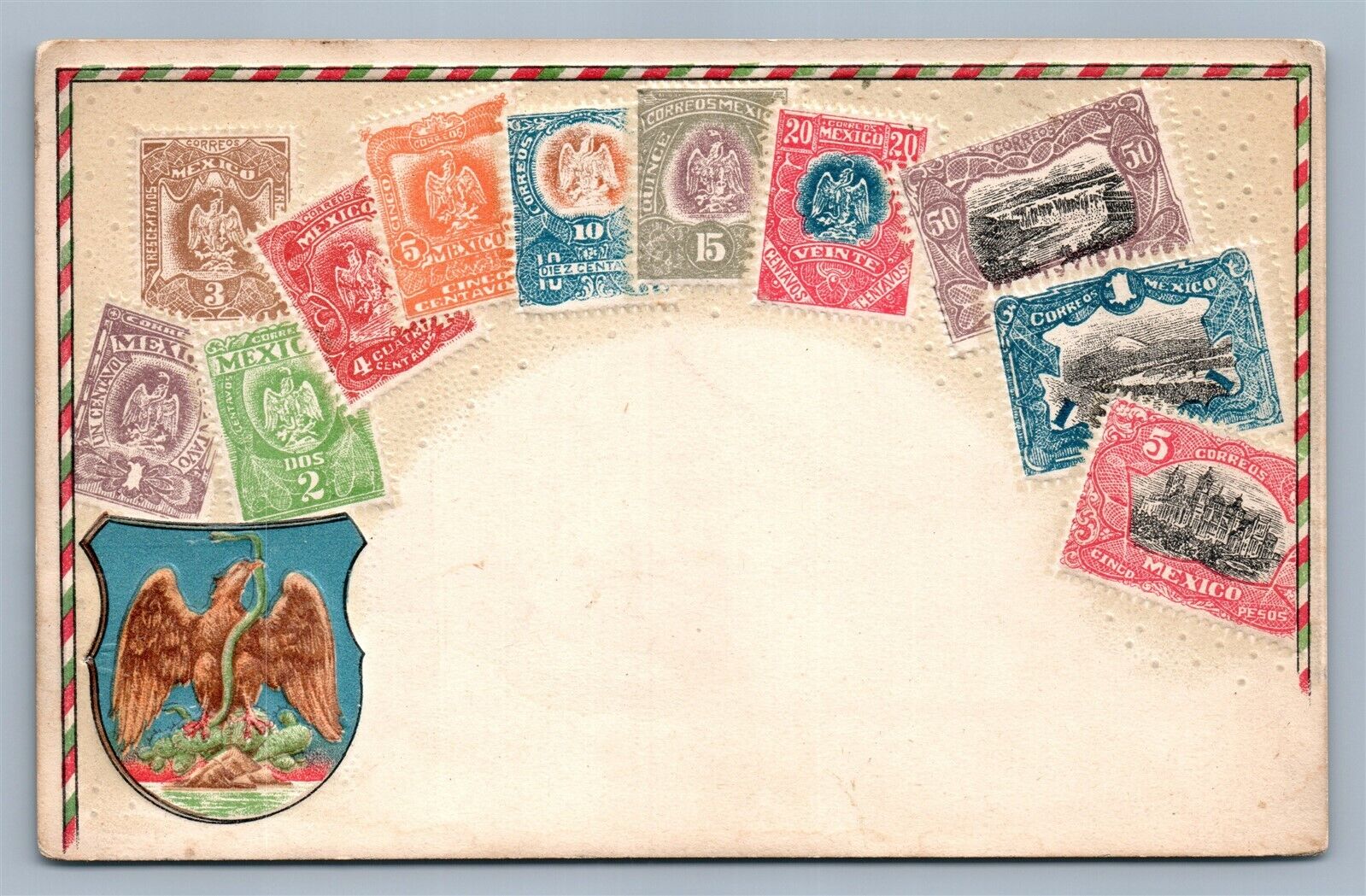 MEXICAN STAMPS EMBOSSED ANTIQUE POSTCARD MEXICO