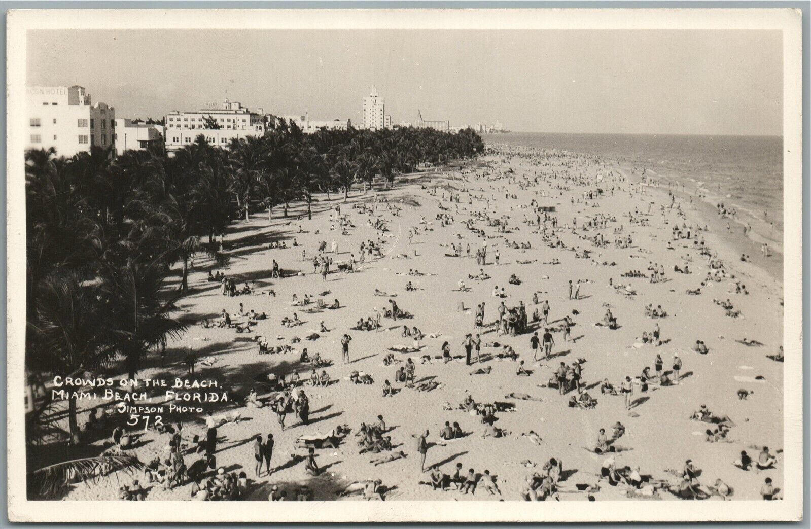 MIAMI BEACH FL CROWD VINTAGE REAL PHOTO POSTCARD RPPC