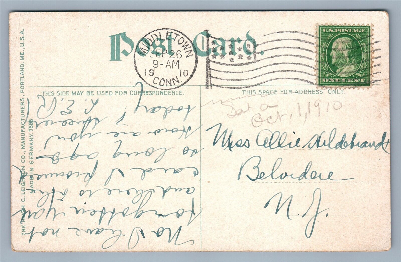MIDDLETOWN CT PHI NU THETA 1910 ANTIQUE POSTCARD