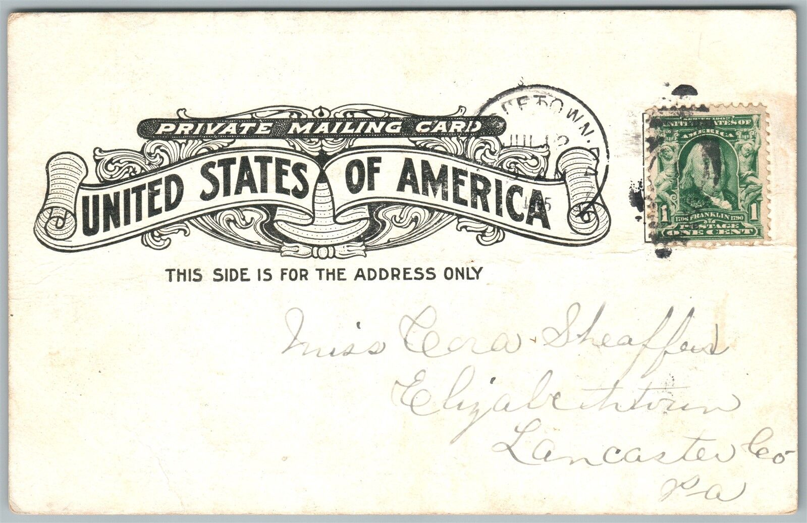 MIDDLETOWN PA ROMANTIC SPOT SWATARA 1905 UNDIVIDED ANTIQUE POSTCARD CORK CANCEL