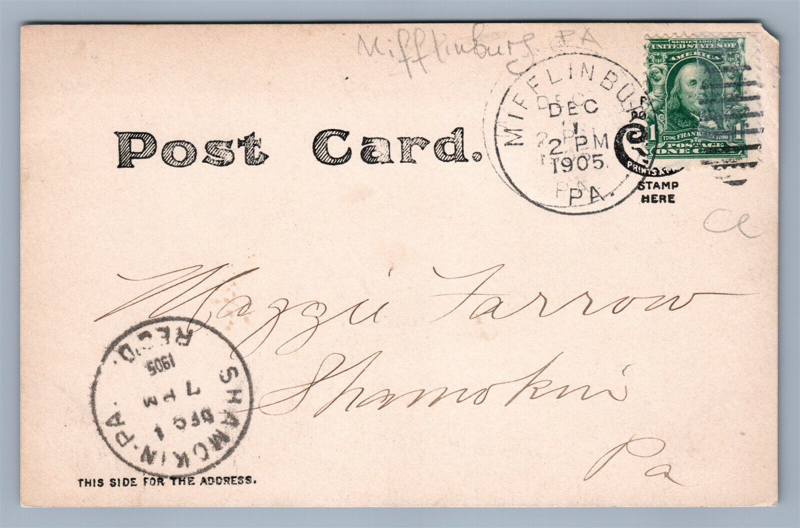 MIFFLINBURG PA MARKET STREET EAST ANTIQUE REAL PHOTO POSTCARD RPPC