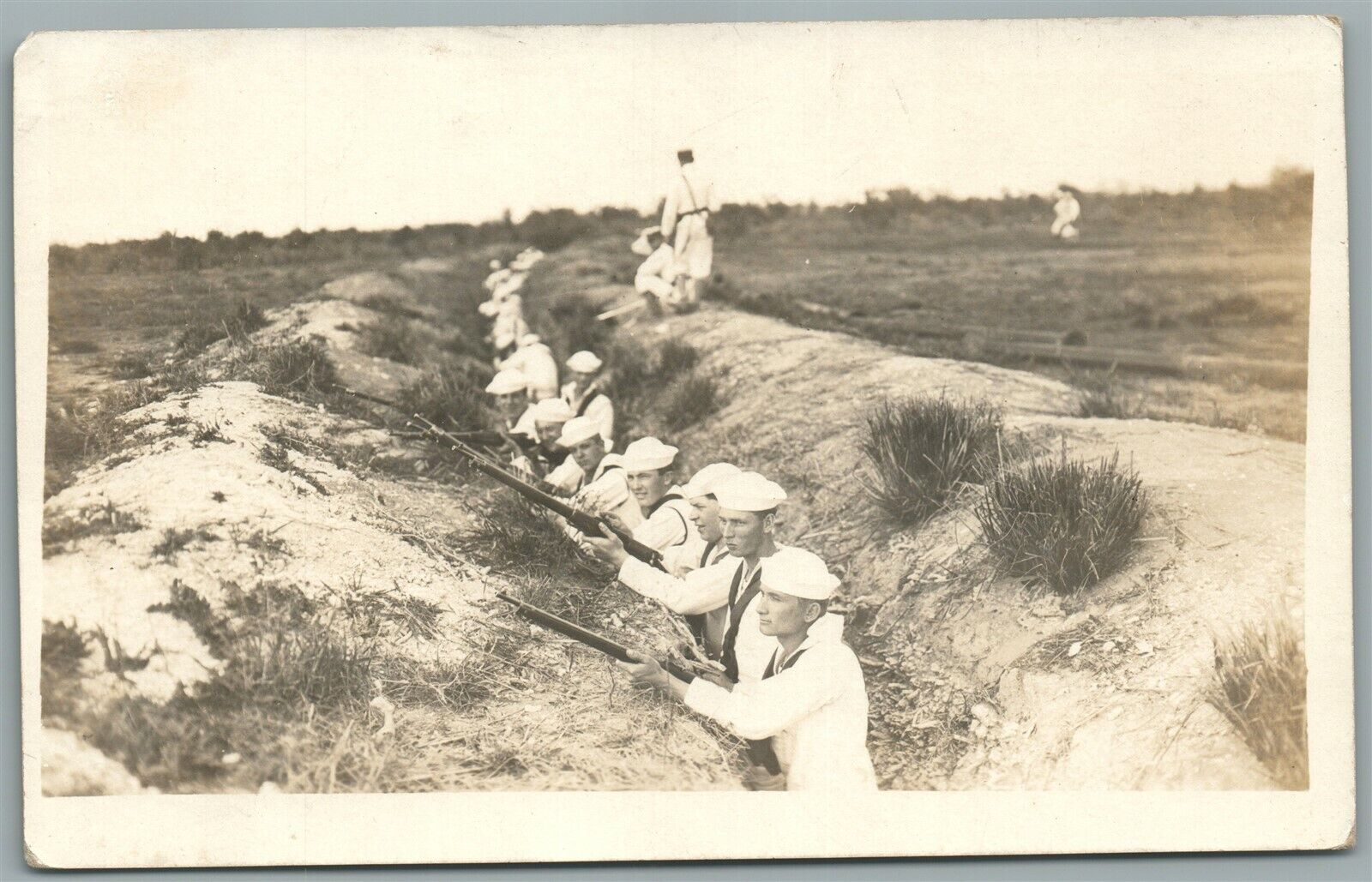 MILITARY FORTIFICATIONS WWI SAILORS w/ RILES ANTIQUE REAL PHOTO POSTCARD RPPC