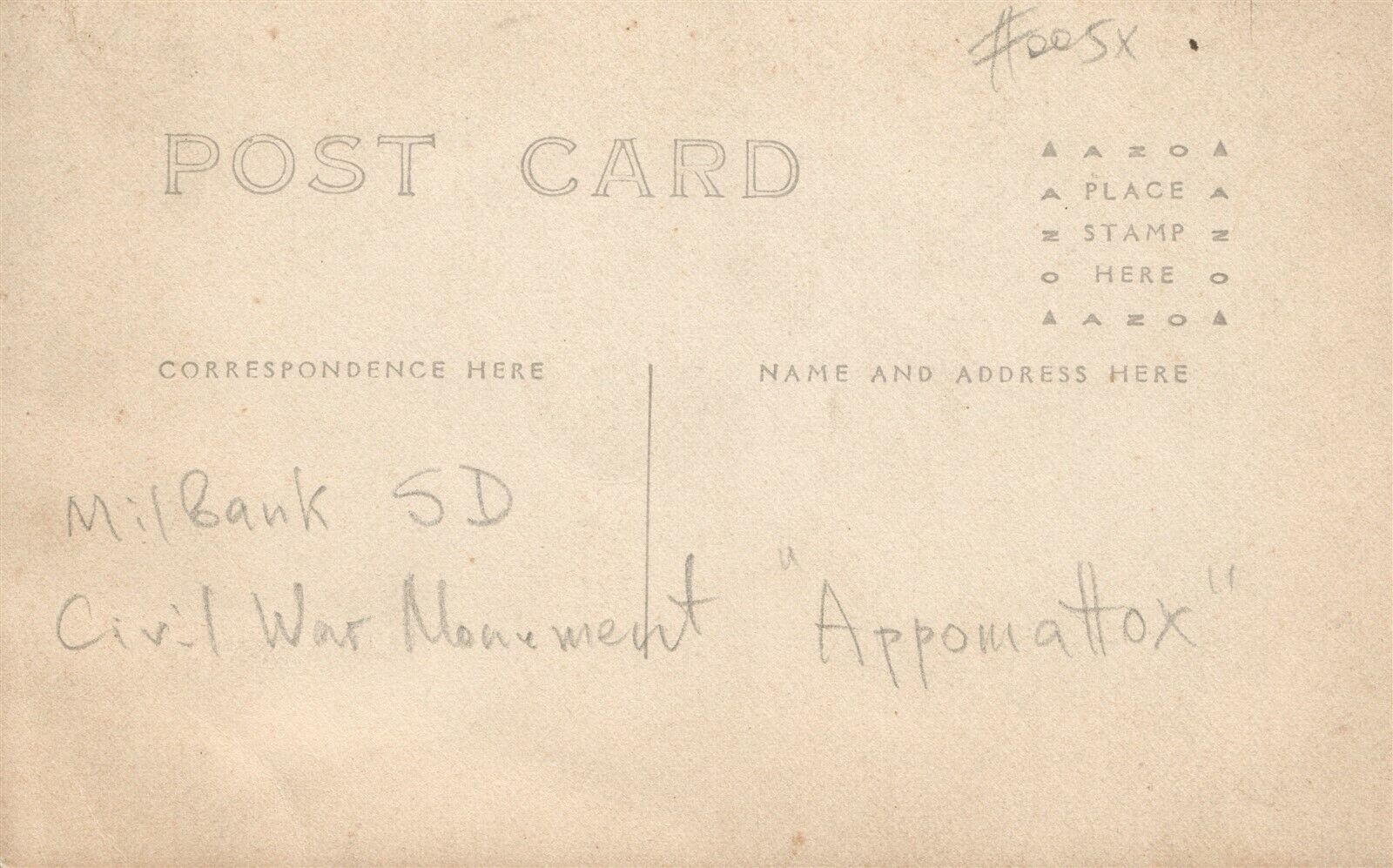 MILLBANK SD CIVIL WAR MONUMENT APPOMATOX CHURCH ANTIQUE REAL PHOTO POSTCARD RPPC