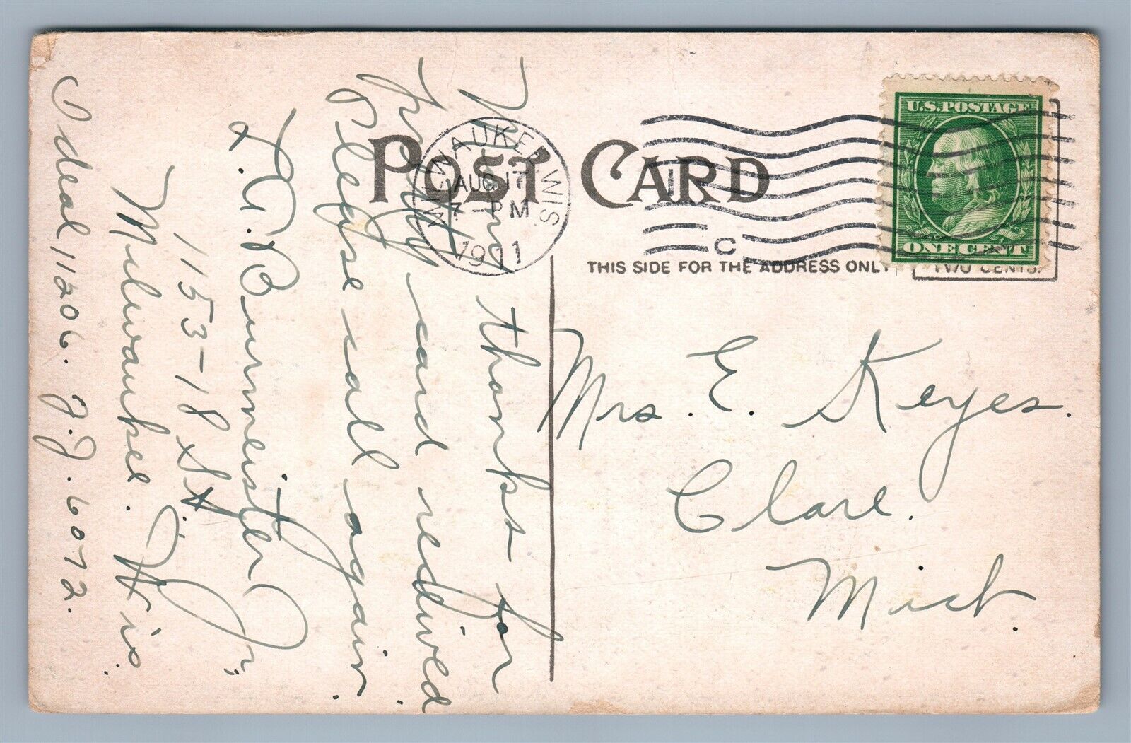 MILWAUKEE WI PUBLIC NATATORIUM cor. RICHARDS & CENTER STR. 1911 ANTIQUE POSTCARD
