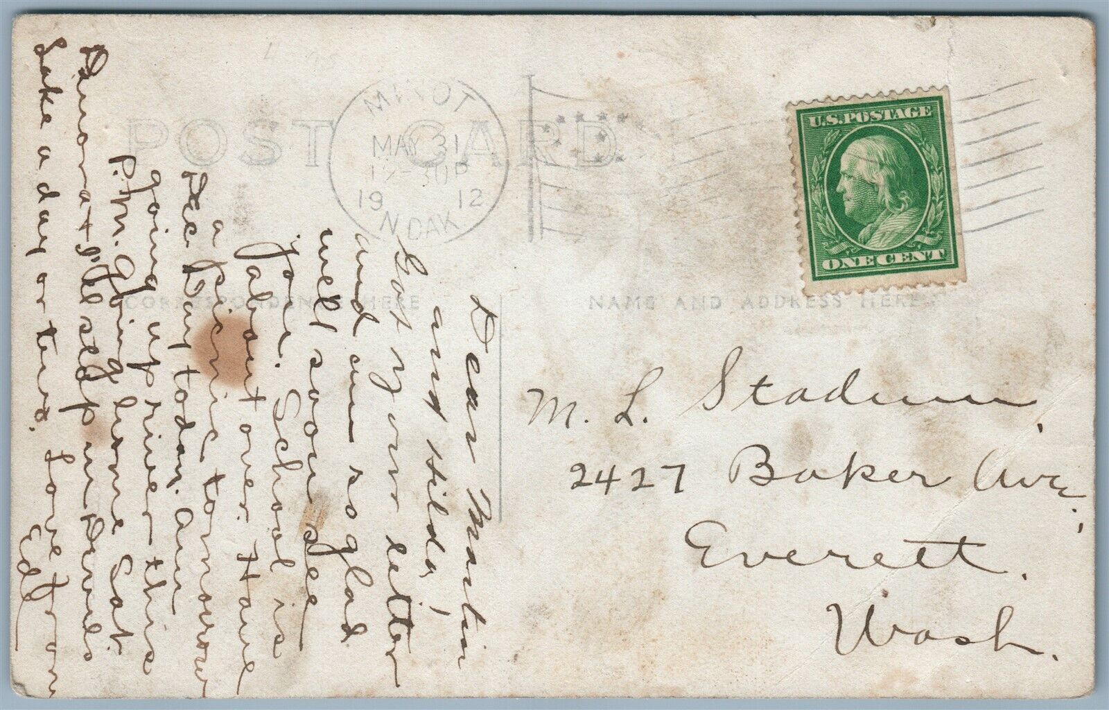 MINOT ND MAIN STREET SCENE TRAIN 1912 ANTIQUE PHOTOMONTAGE REAL PHOTO PC RPPC