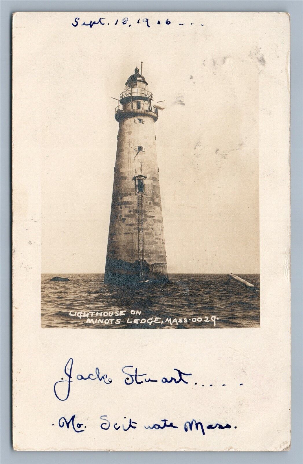 MINOTS LEDGE MA LIGHTHOUSE 1905 ANTIQUE REAL PHOTO POSTCARD RPPC