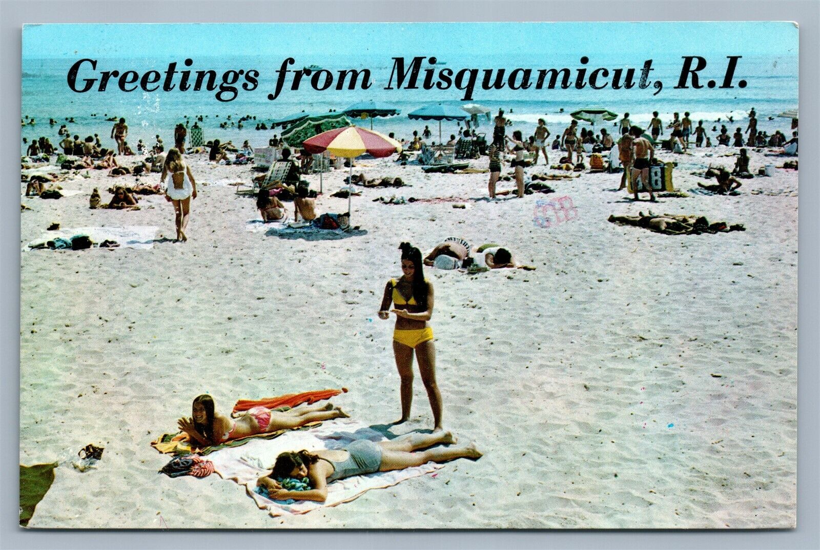 MISQUAMICUT RI BEACH SCENE VINTAGE POSTCARD