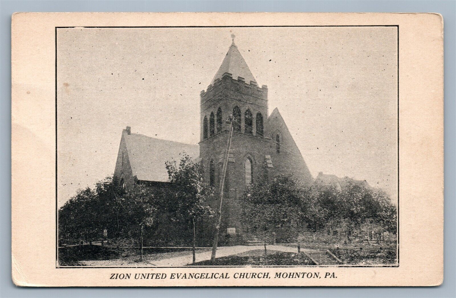 MOHNTON PA ZION UNITED EVANGELICAL CHURCH 1916 ADVERTISING ANTIQUE POSTCARD