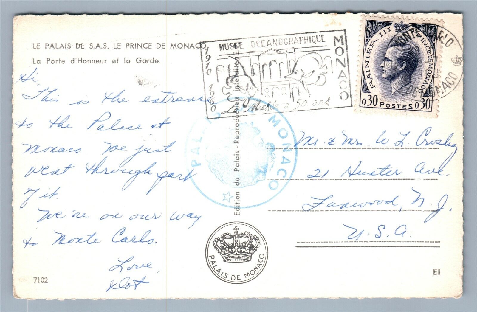 MONACO PRINCE'S PALACE VINTAGE REAL PHOTO POSTCARD RPPC w/ OCEANOGRAPHIQUE STAMP