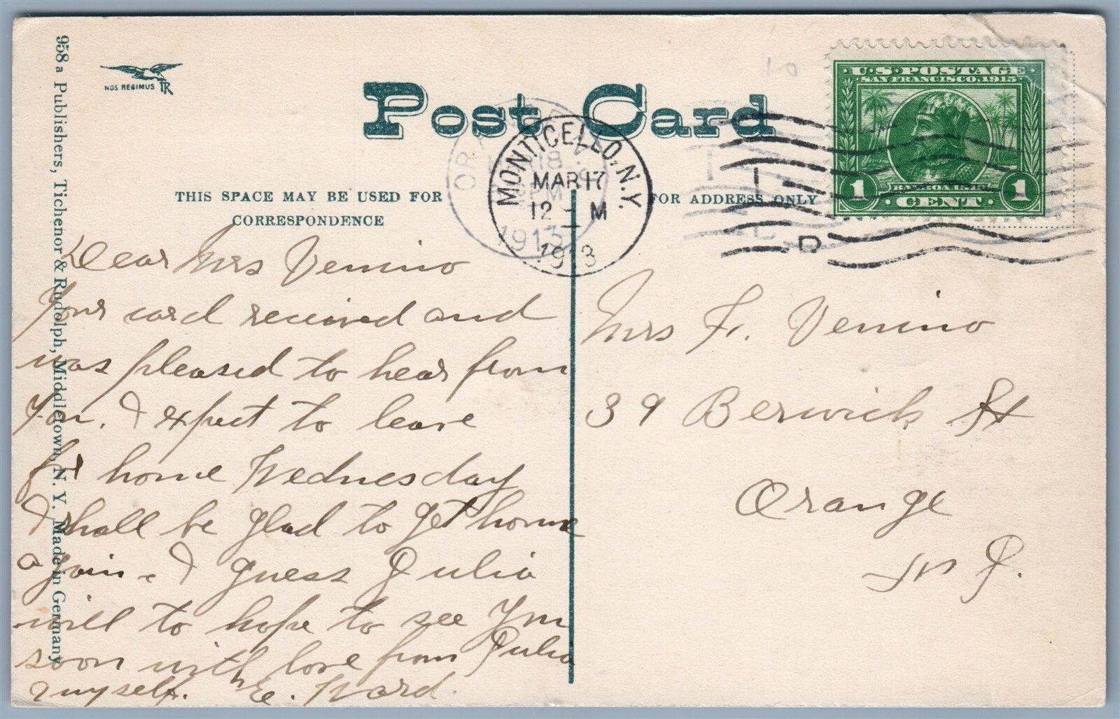 MONTICELLO SULLIVAN CO. NY WAVERLY LOOKING EAST 1913 ANTIQUE POSTCARD