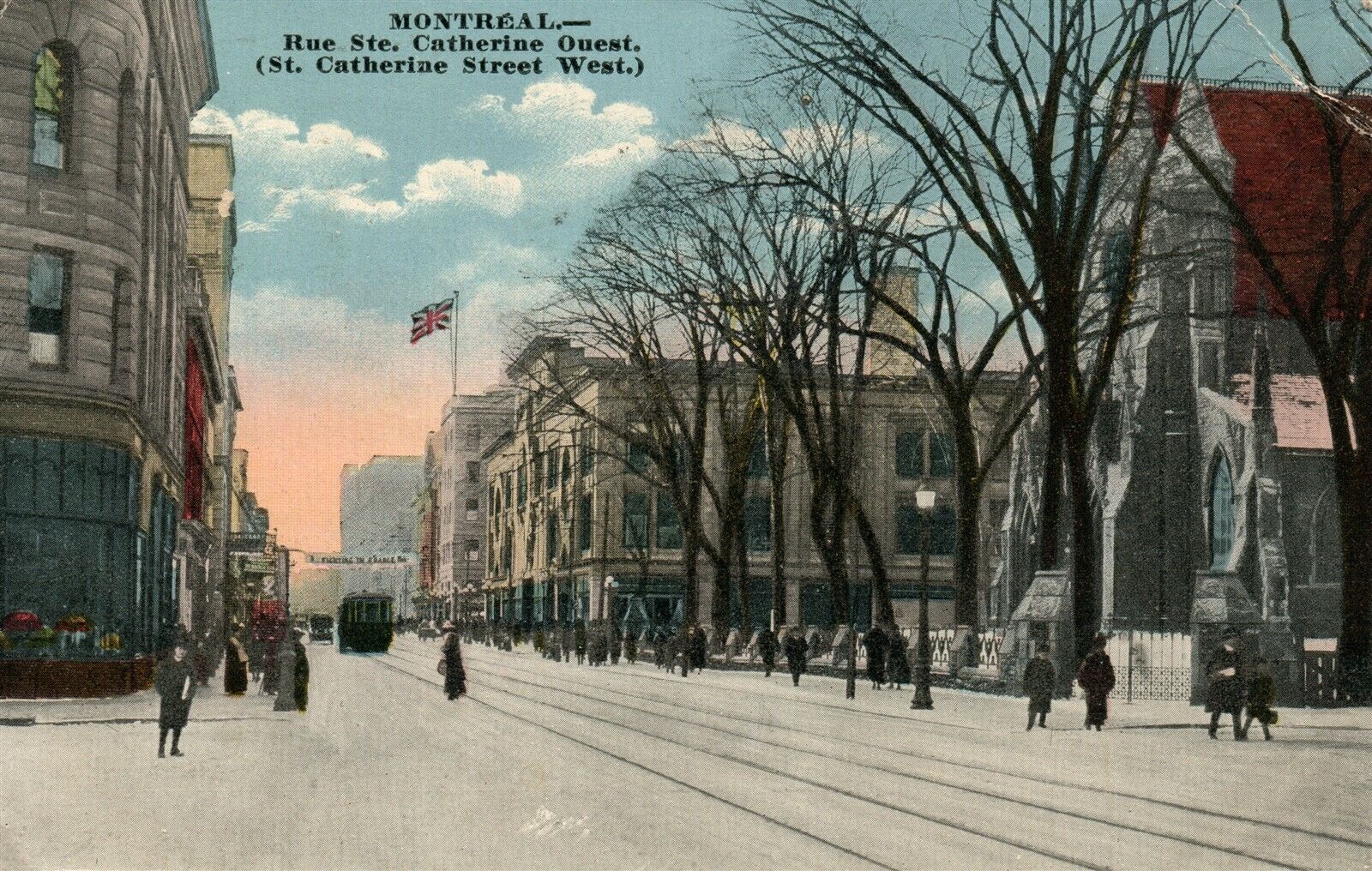 MONTREAL CANADA RUE ST. CATHERINE 1917 ANTIQUE POSTCARD