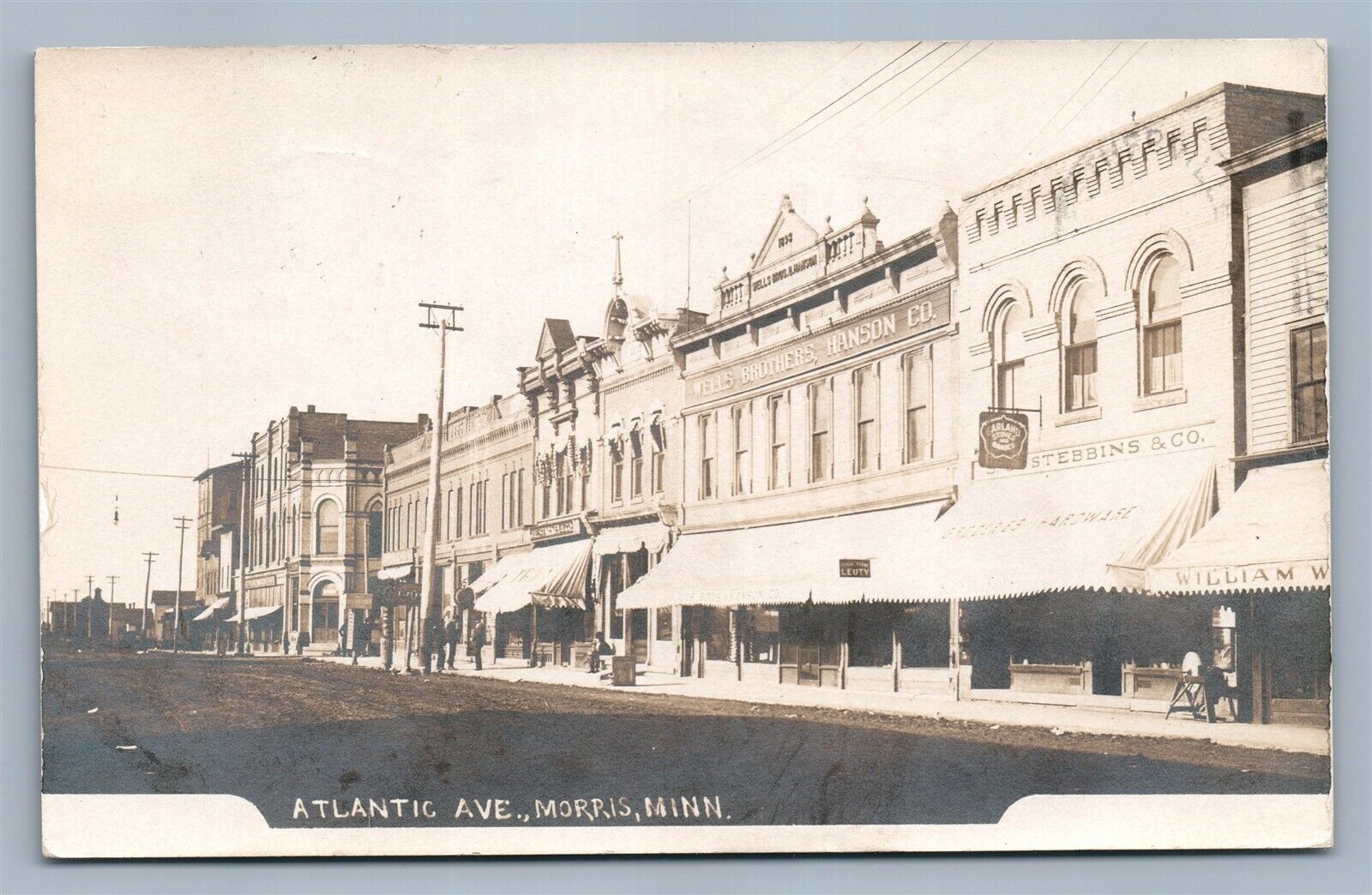 MORRIS MN ATLANTIC AVE. ANTIQUE REAL PHOTO POSTCARD RPPC Wells Bros. Hanson Co.