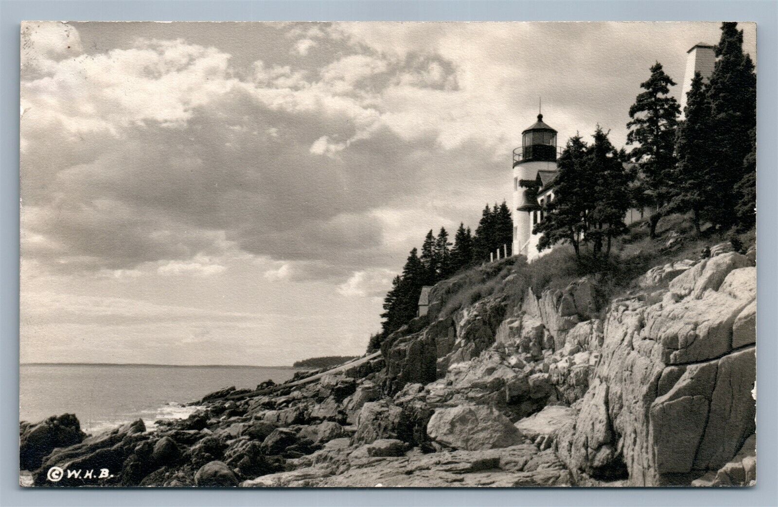 MT.DESERT ISLAND ME BASS HARBOR LIGHT HOUSE VINTAGE REAL PHOTO POSTCARD RPPC