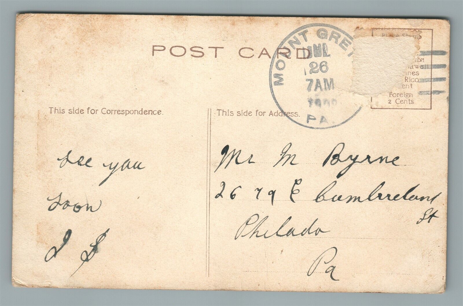 MT. GRETNA PA ENCAMPMENT MILITARY ANTIQUE POSTCARD