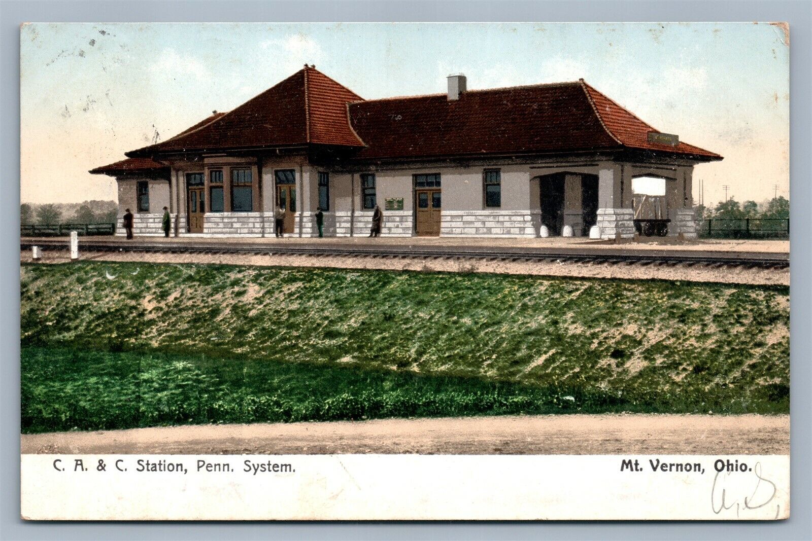 MT.VERNON OH RAILWAY STATION ANTIQUE POSTCARD railroad train depot