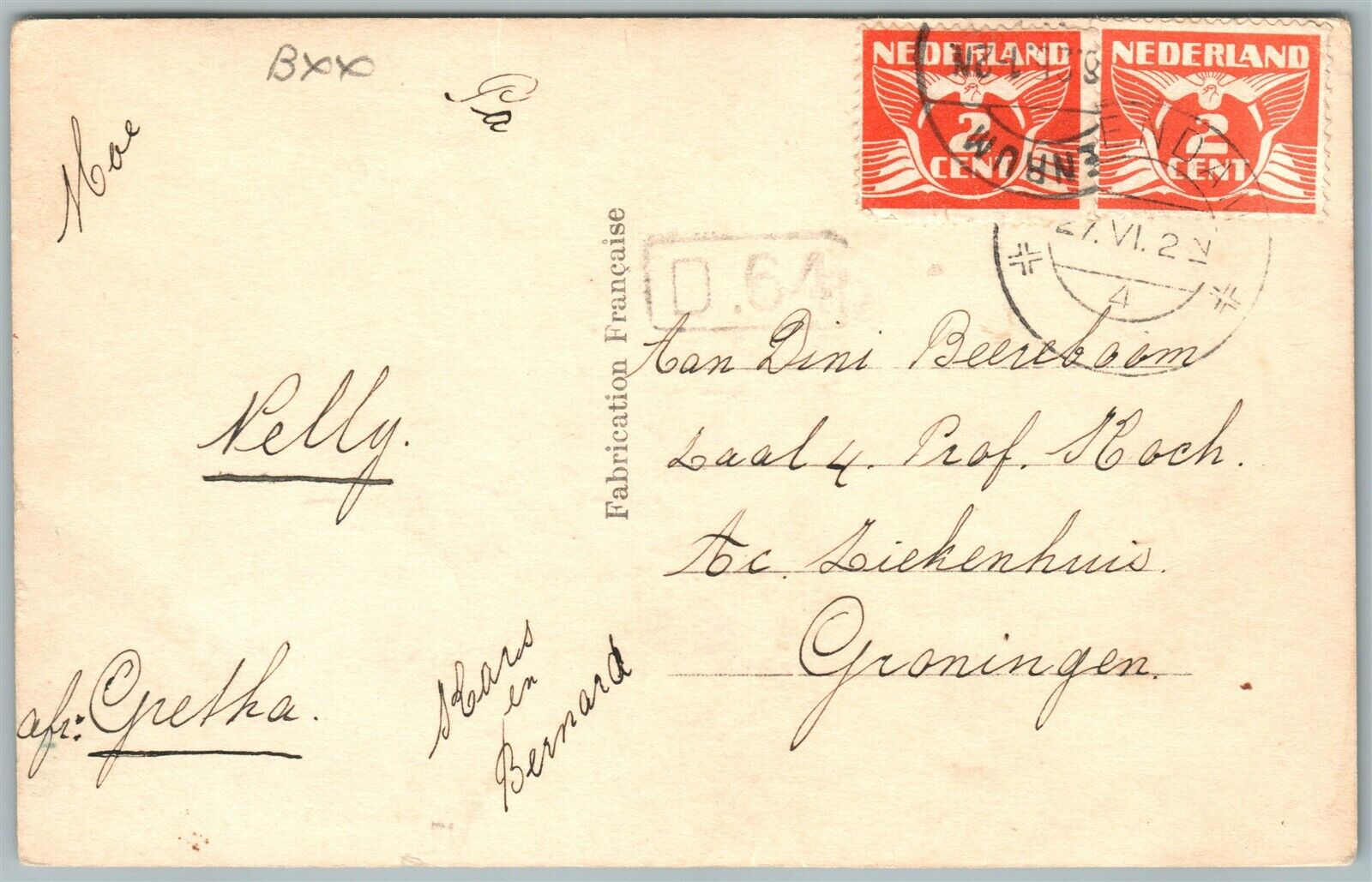 MULTIPLE BABIES CAR RACE ANTIQUE POSTCARD w/ NETHERLANDS STAMPS