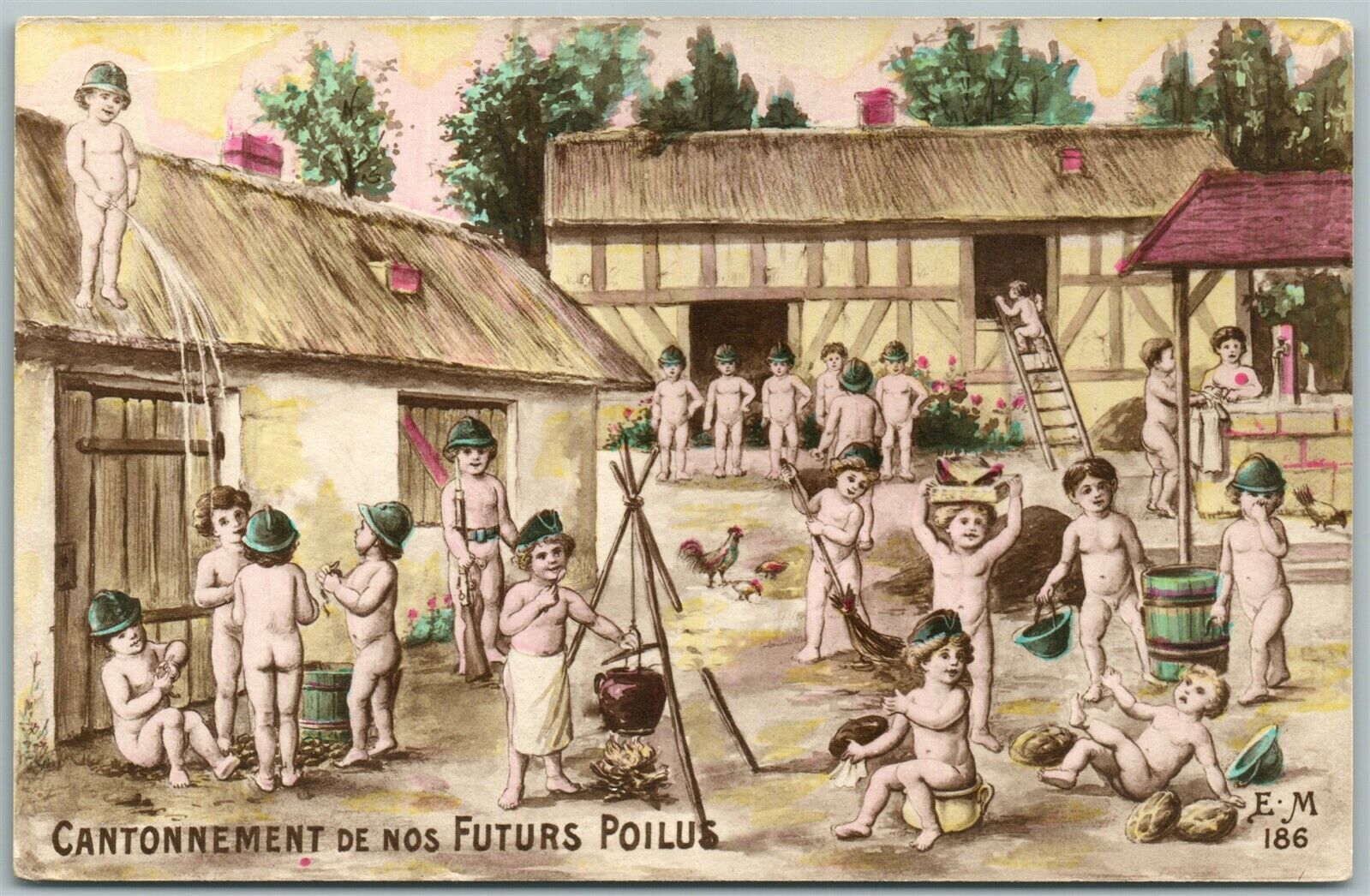 MULTIPLE BABIES ENCAMPMENT VINTAGE POSTCARD