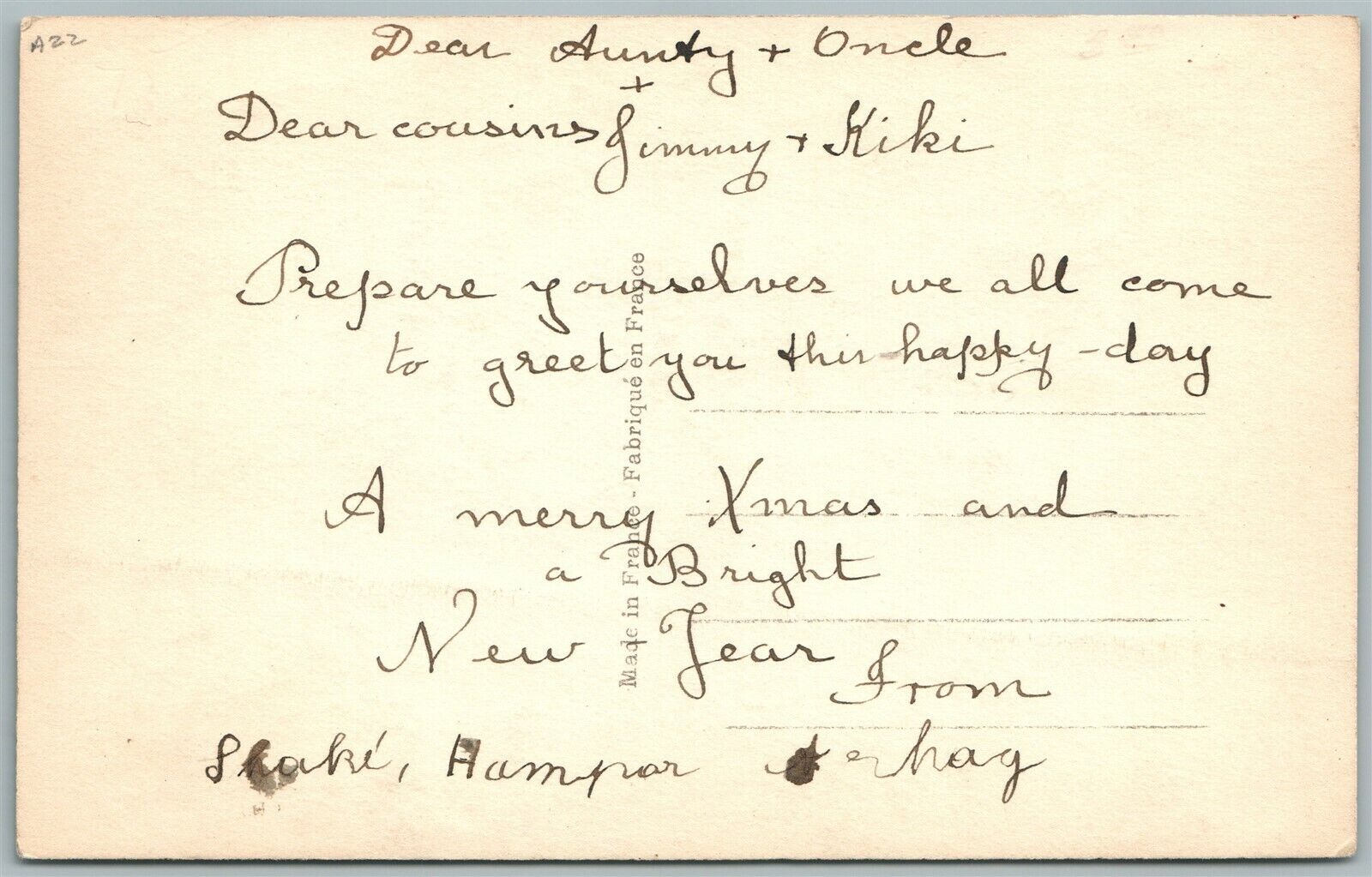MULTIPLE BABIES in BLUE CAR HAND COLORED REAL PHOTO ANTIQUE POSTCARD RPPC