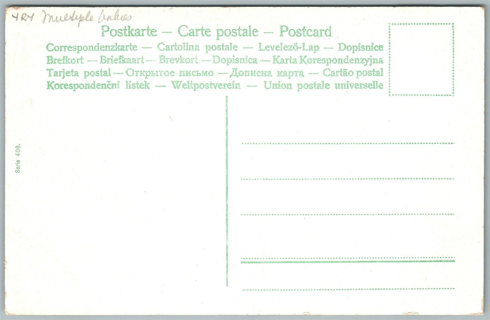 MULTIPLE BABIES KISSING IN FLOWERS ANTIQUE POSTCARD