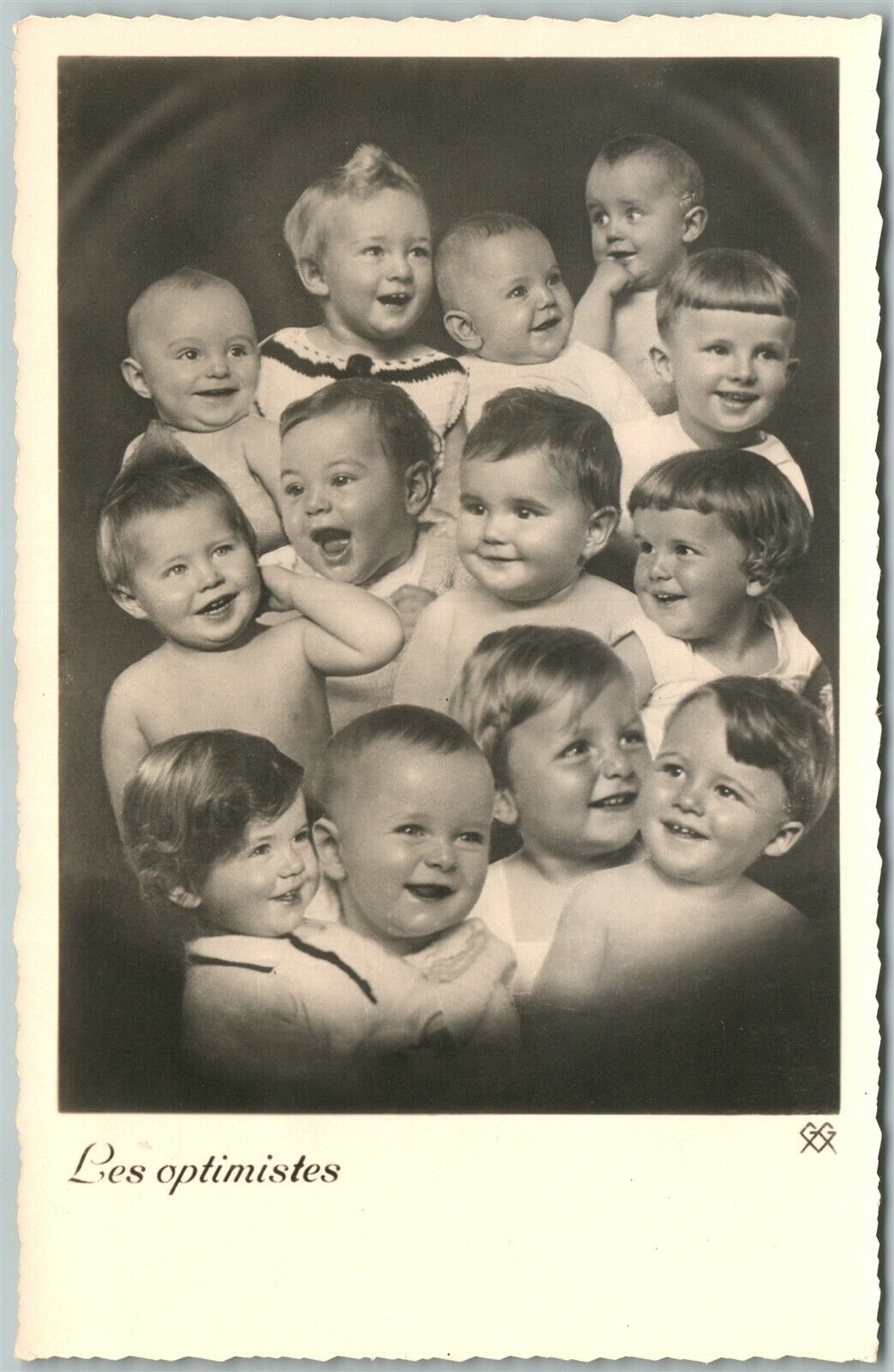 MULTIPLE BABIES SMILING ANTIQUE REAL PHOTO POSTCARD RPPC