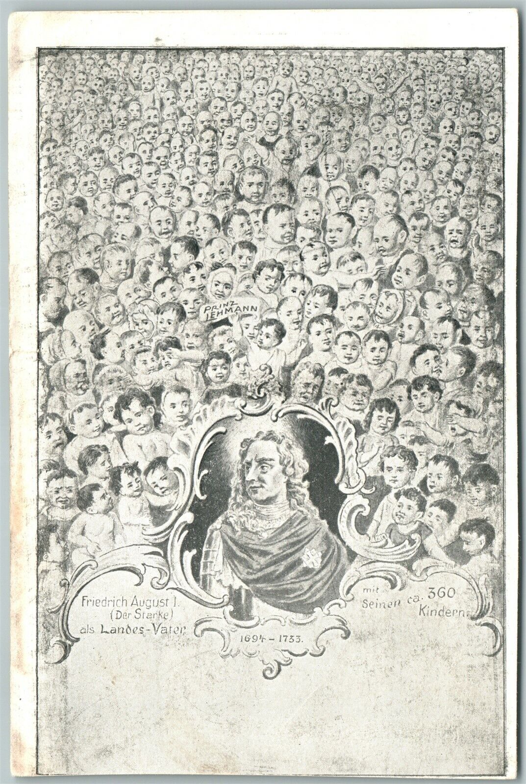 MULTIPLE BABIES w/ KING FRIEDRICH AUGUST PORTRAIT ANTIQUE POSTCARD