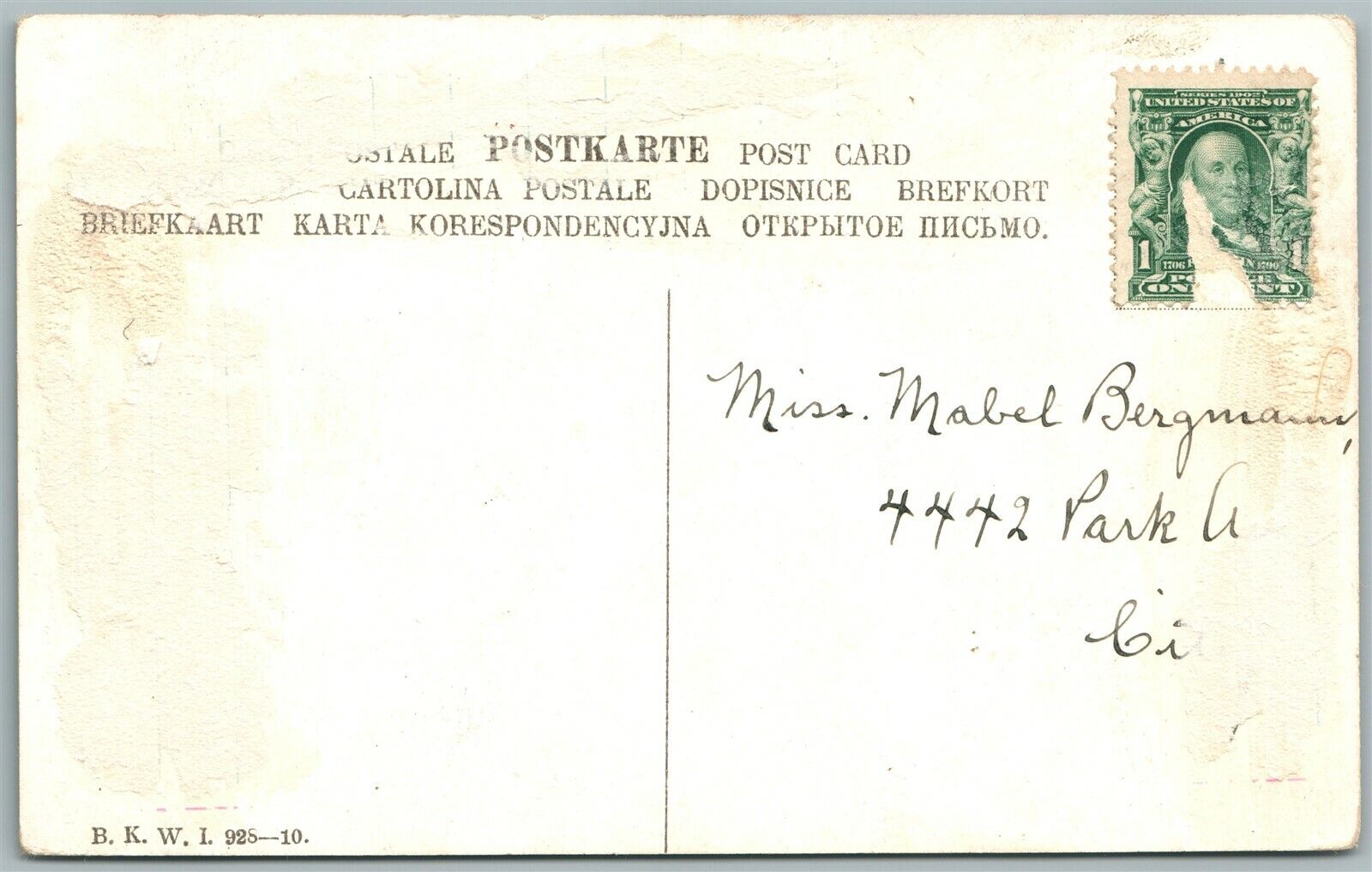 MULTIPLE BABIES w/ STORK in the GARDEN ANTIQUE POSTCARD