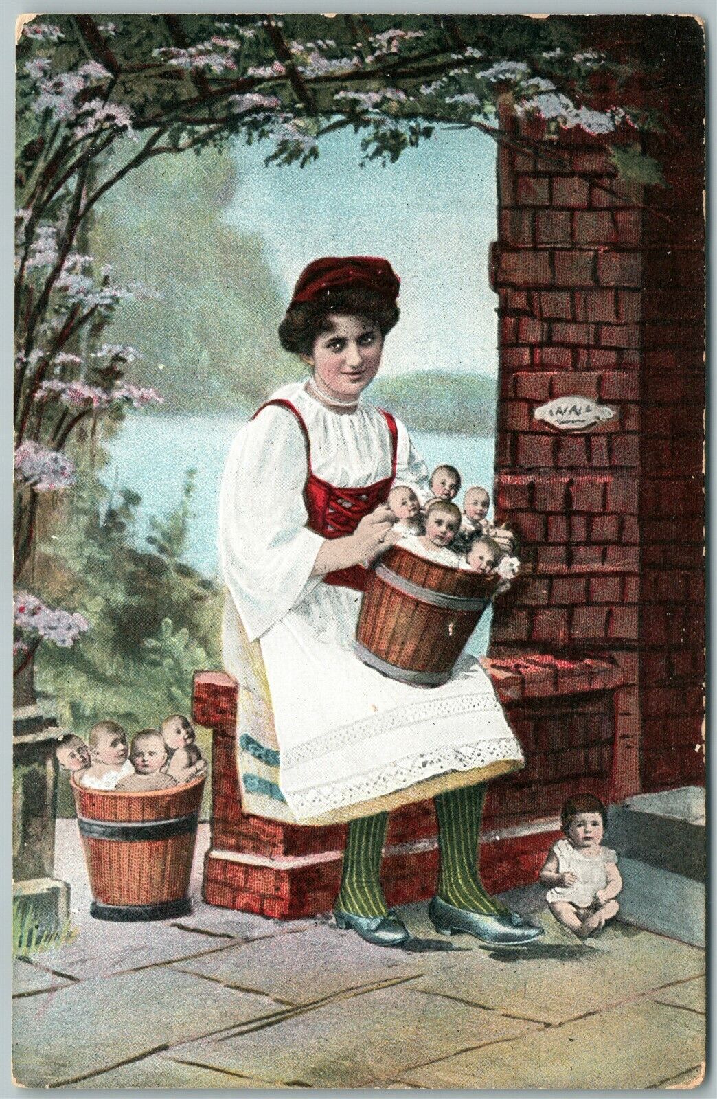MULTIPLE BABIES with MOTHER ANTIQUE POSTCARD