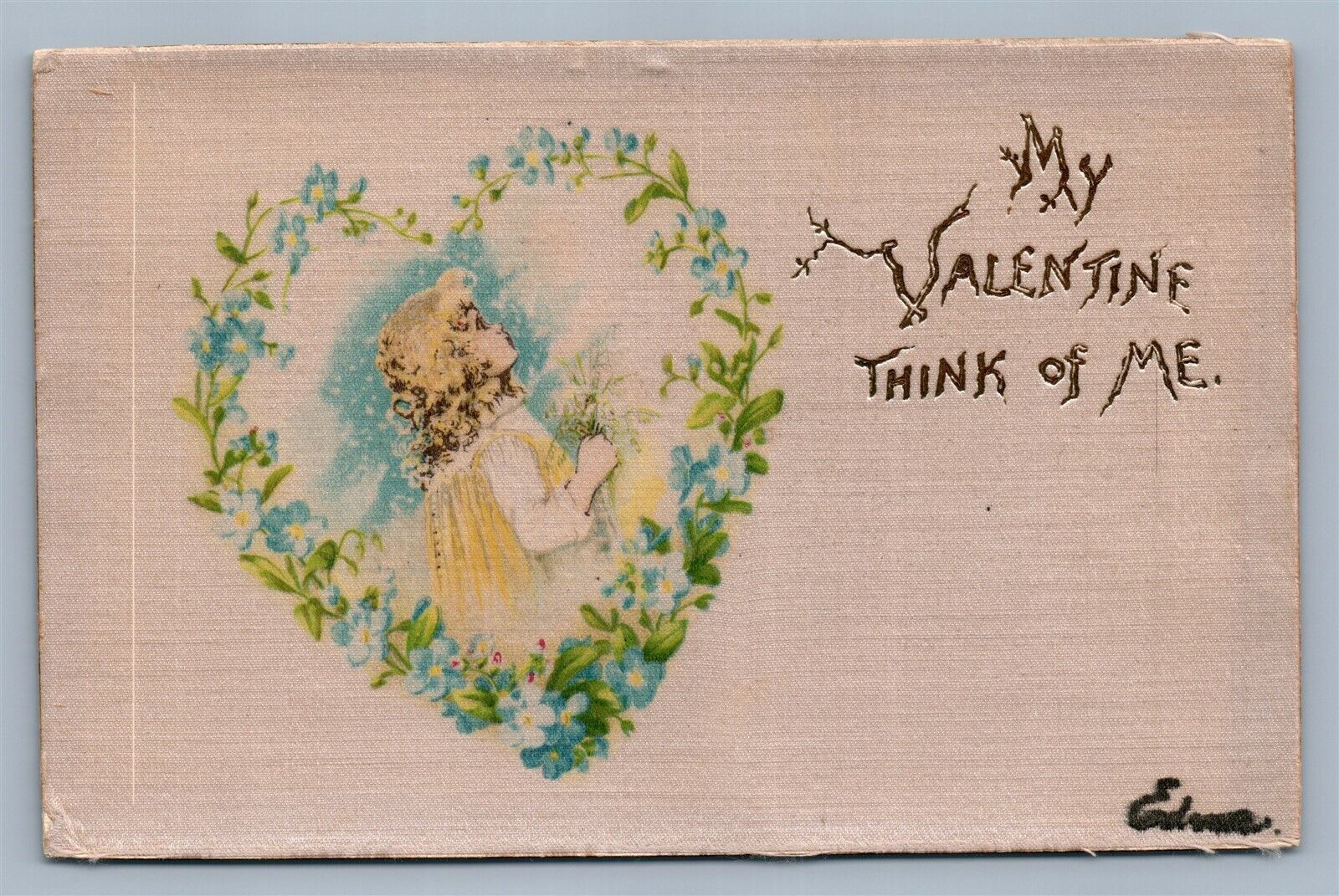 MY VALENTINE THINK OF ME ANTIQUE POSTCARD PRINTED ON SILK