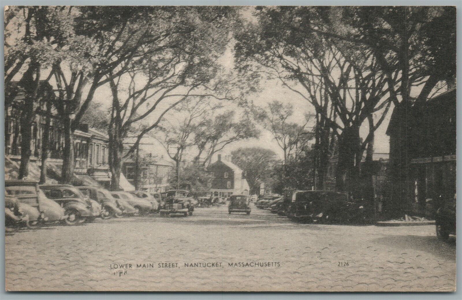 NANTUCKET MA LOWER MAIN STREET VINTAGE POSTCARD