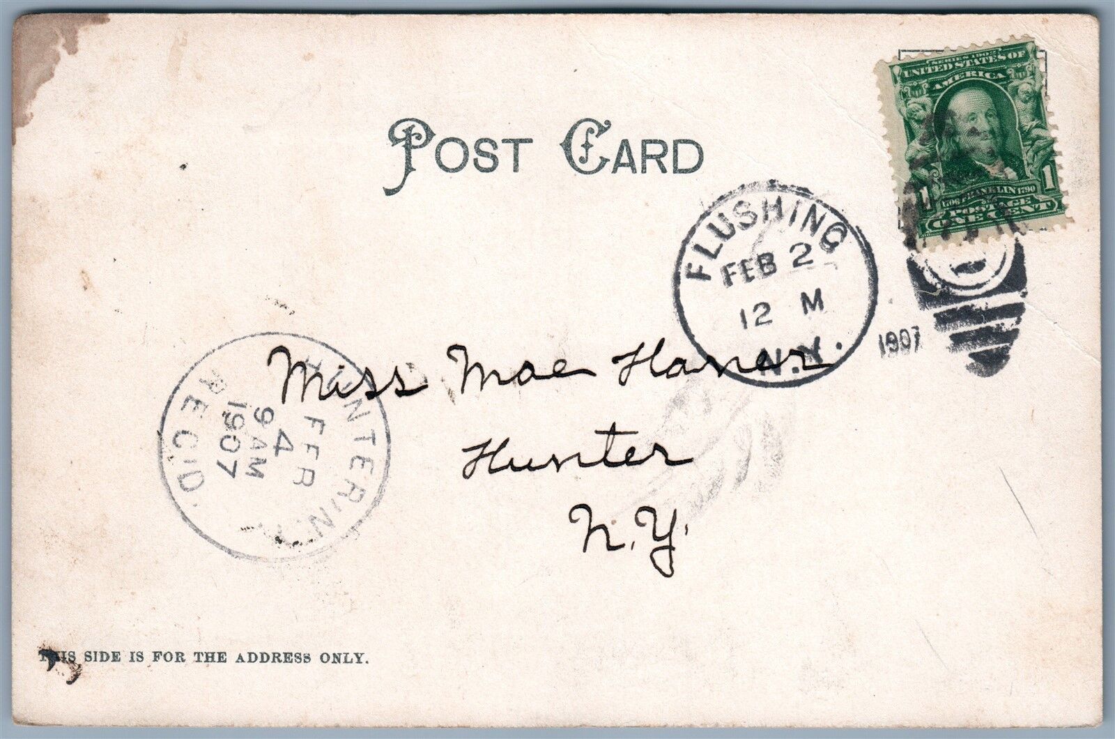 NASSAU LONG ISLAND NY GOLF CLUB HOUSE 1907 ANTIQUE POSTCARD w/ CORK CANCEL