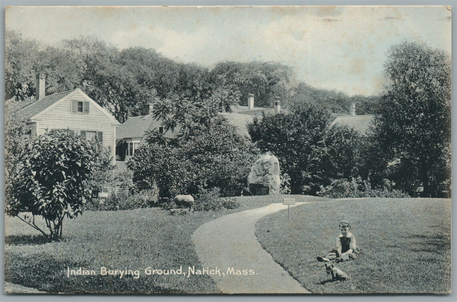 NATICK MA INDIAN BURYING GROUND ANTIQUE POSTCARD