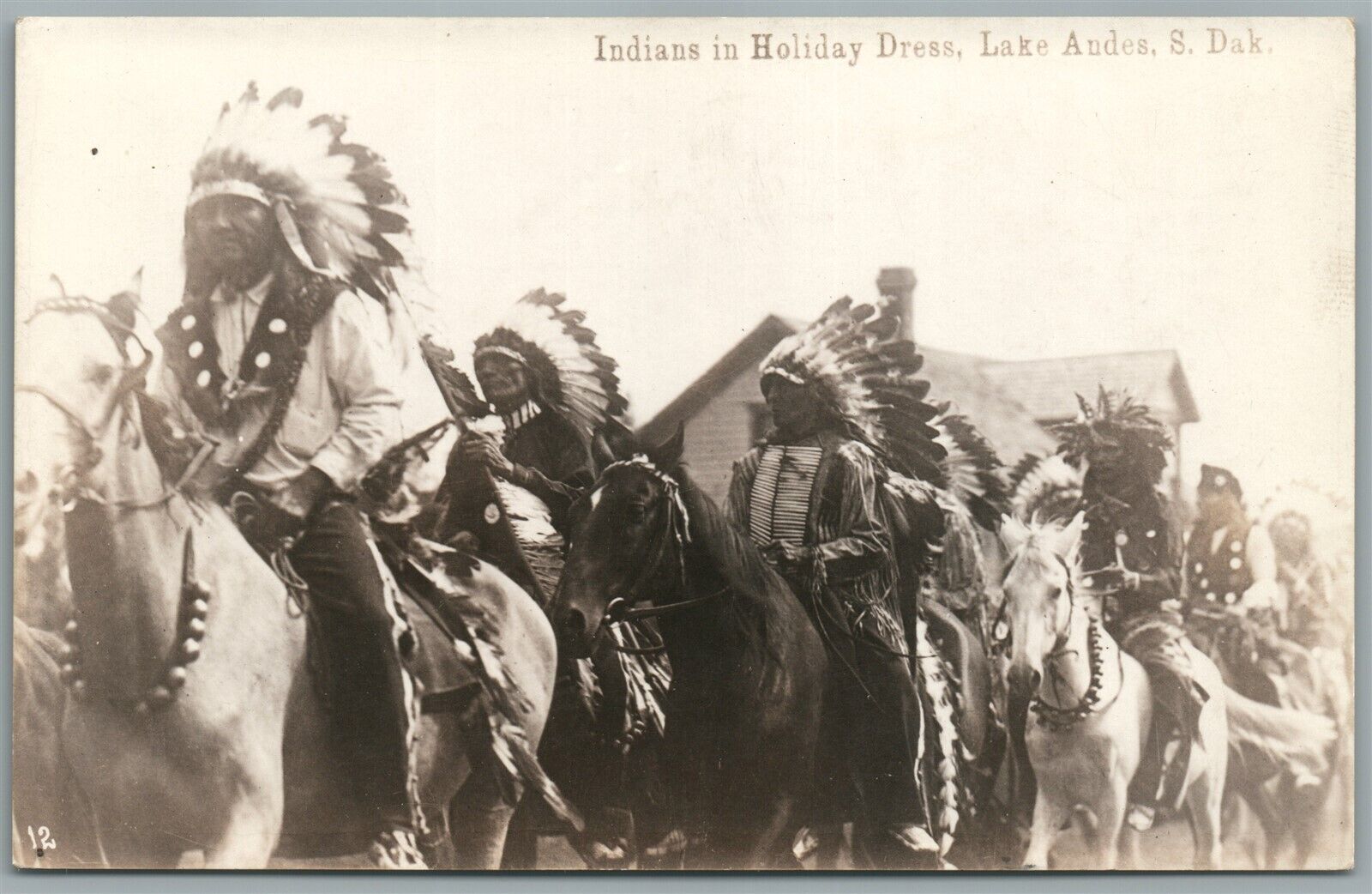 NATIVE AMERICAN INDIANS LAKE ANDES SD VINTAGE REAL PHOTO POSTCARD RPPC