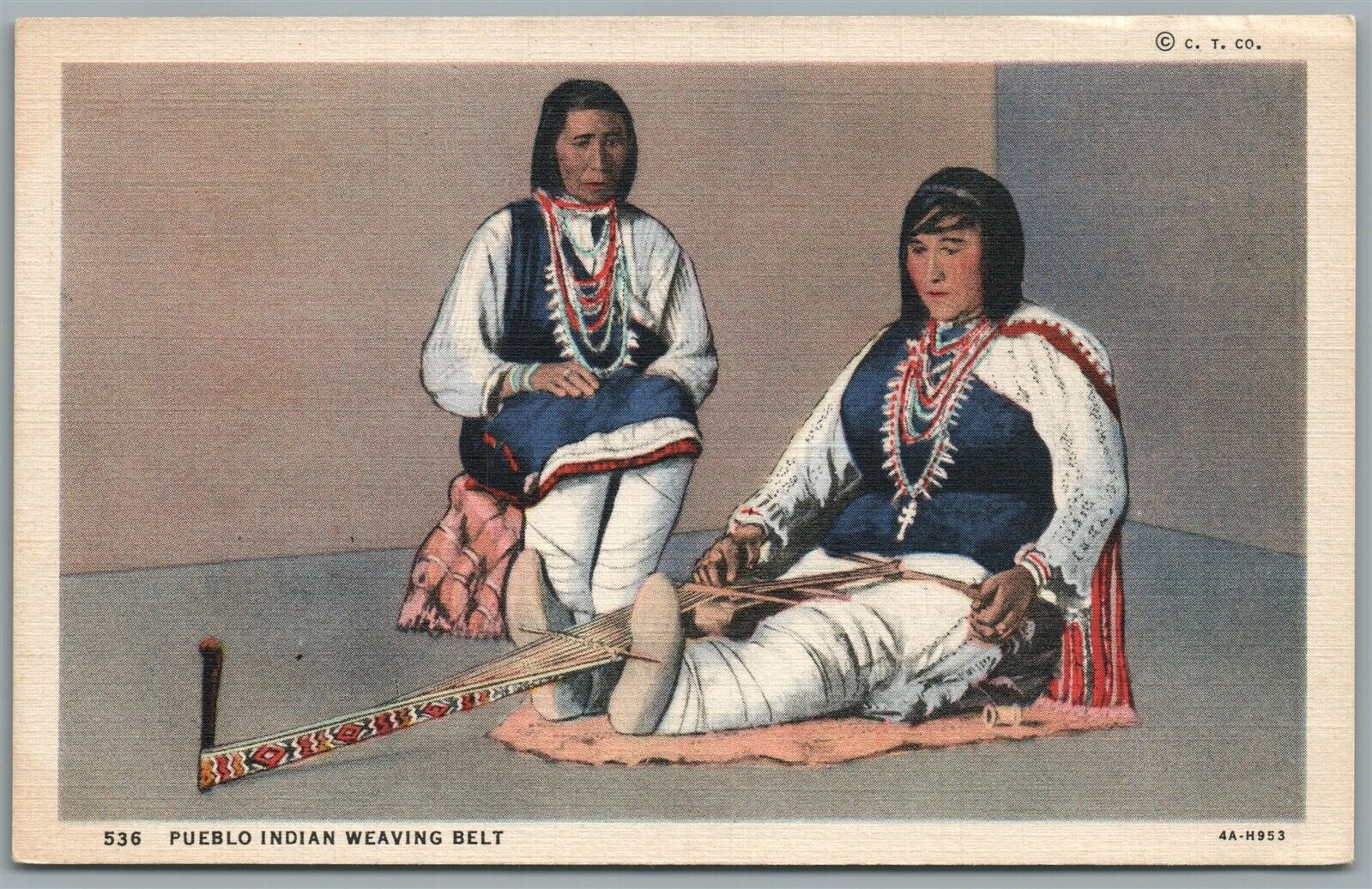 NATIVE AMERICAN PUEBLO INDIAN WEAVING BELT VINTAGE POSTCARD