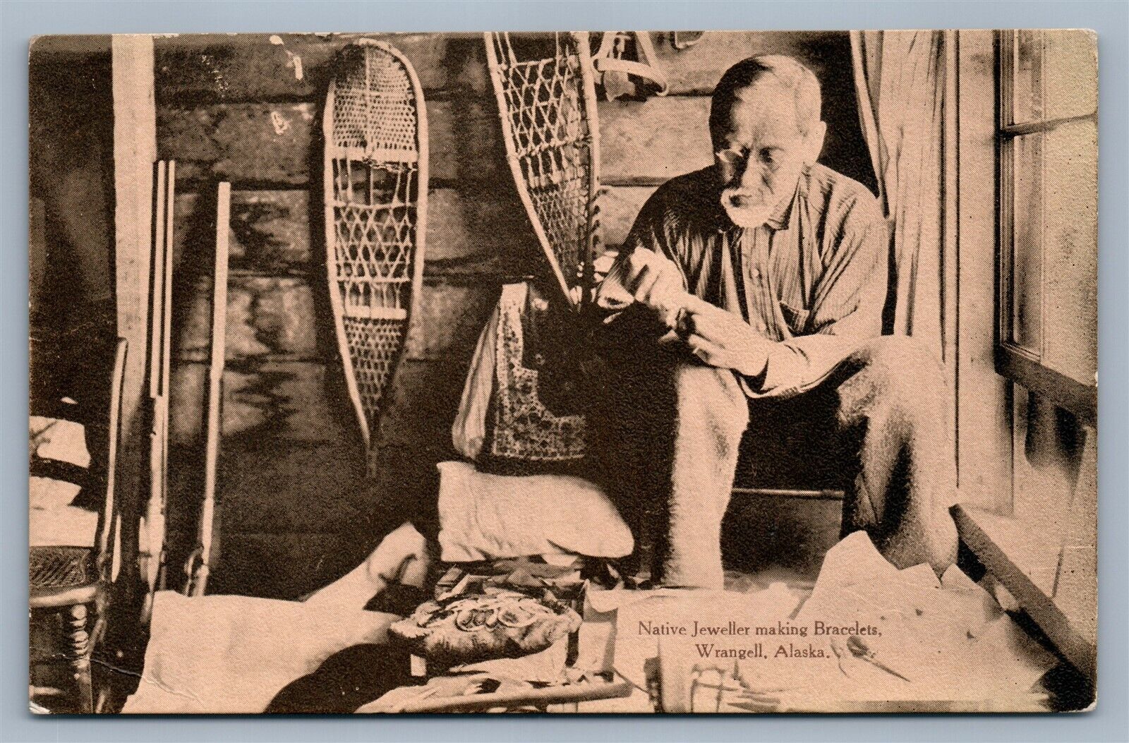 NATIVE JEWELLER MAKING BRACELETS WRANGELL AK ANTIQUE POSTCARD