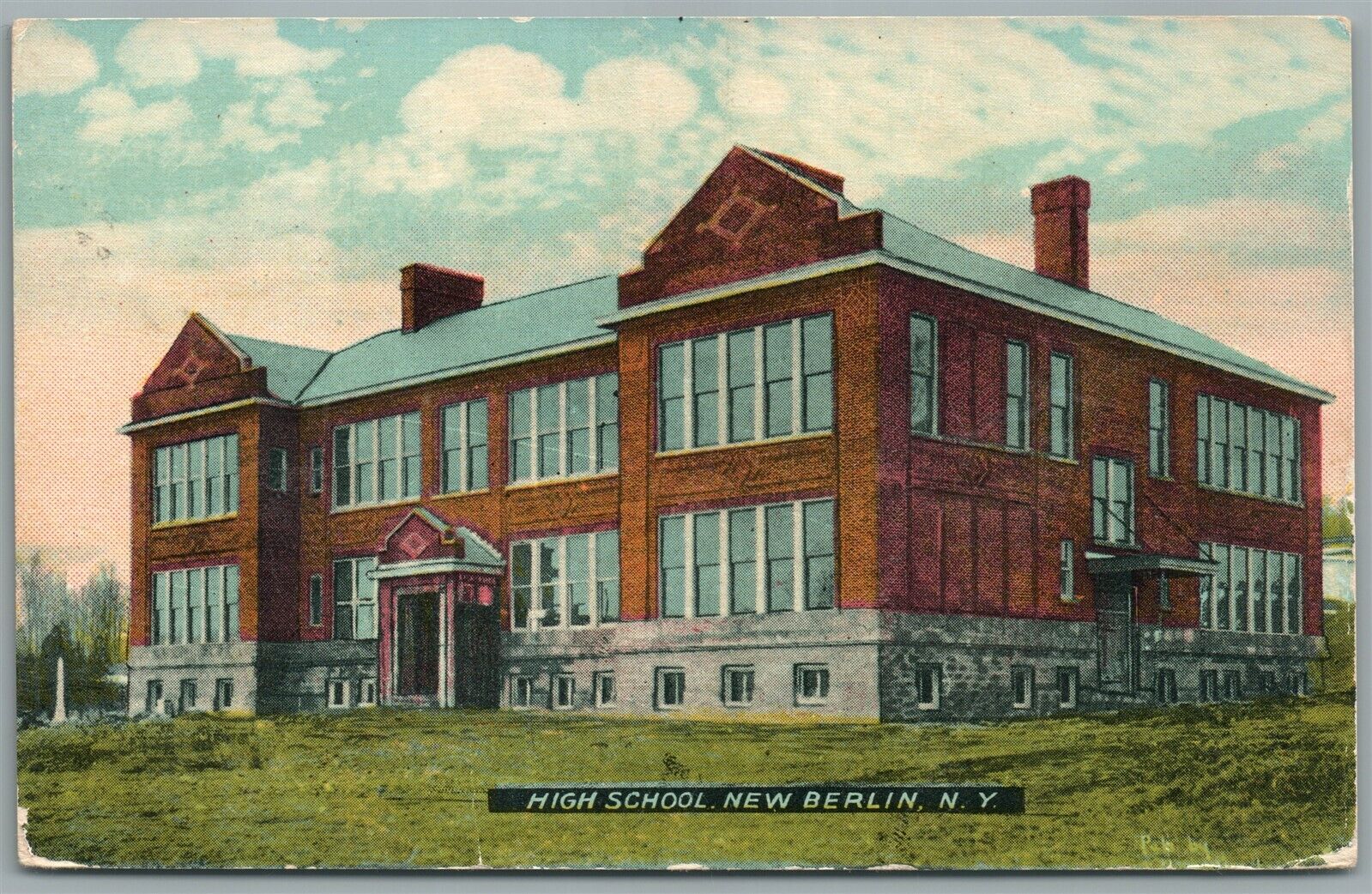 NEW BERLIN NY HIGH SCHOOL ANTIQUE POSTCARD