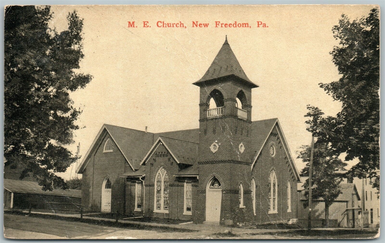 NEW FREEDOM PA M.E. CHURCH 1913 ANTIQUE POSTCARD