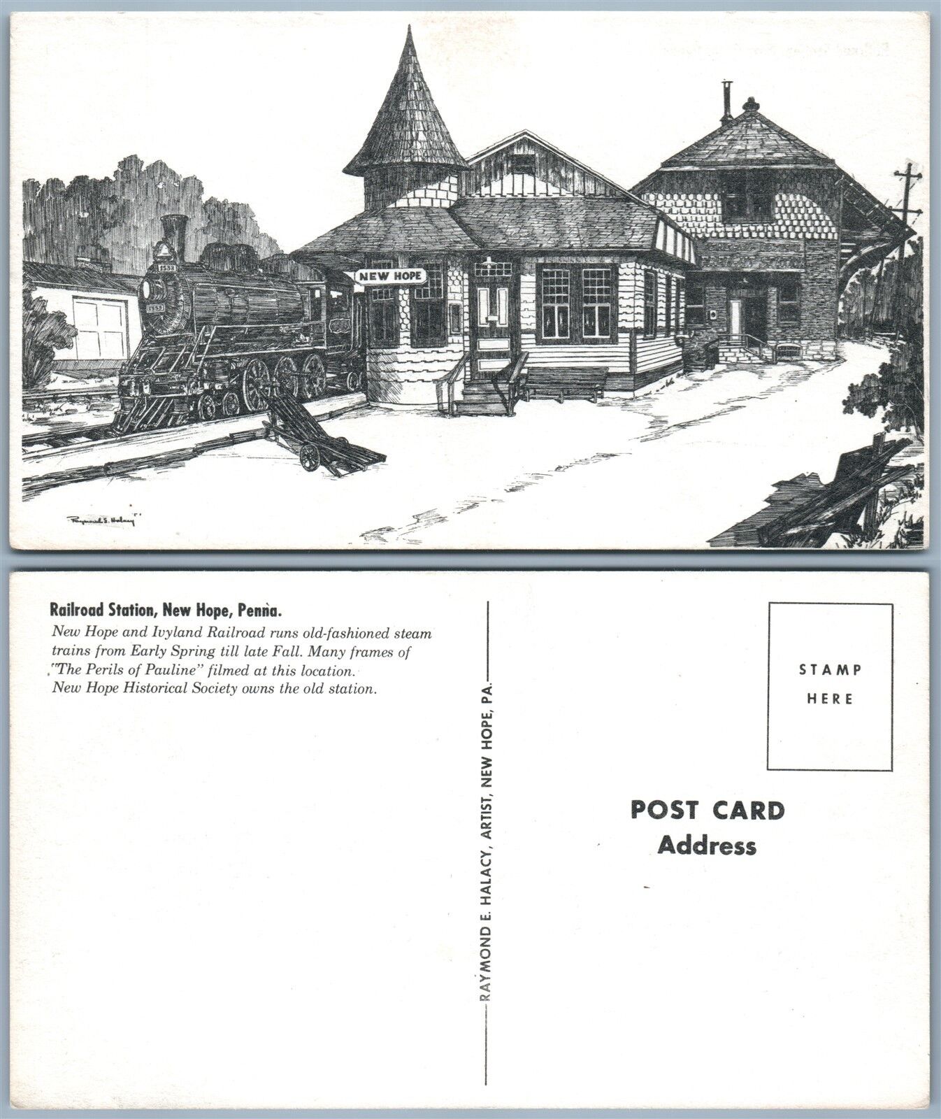 NEW HOPE PA RAILROAD STATION VINTAGE POSTCARD railway depot