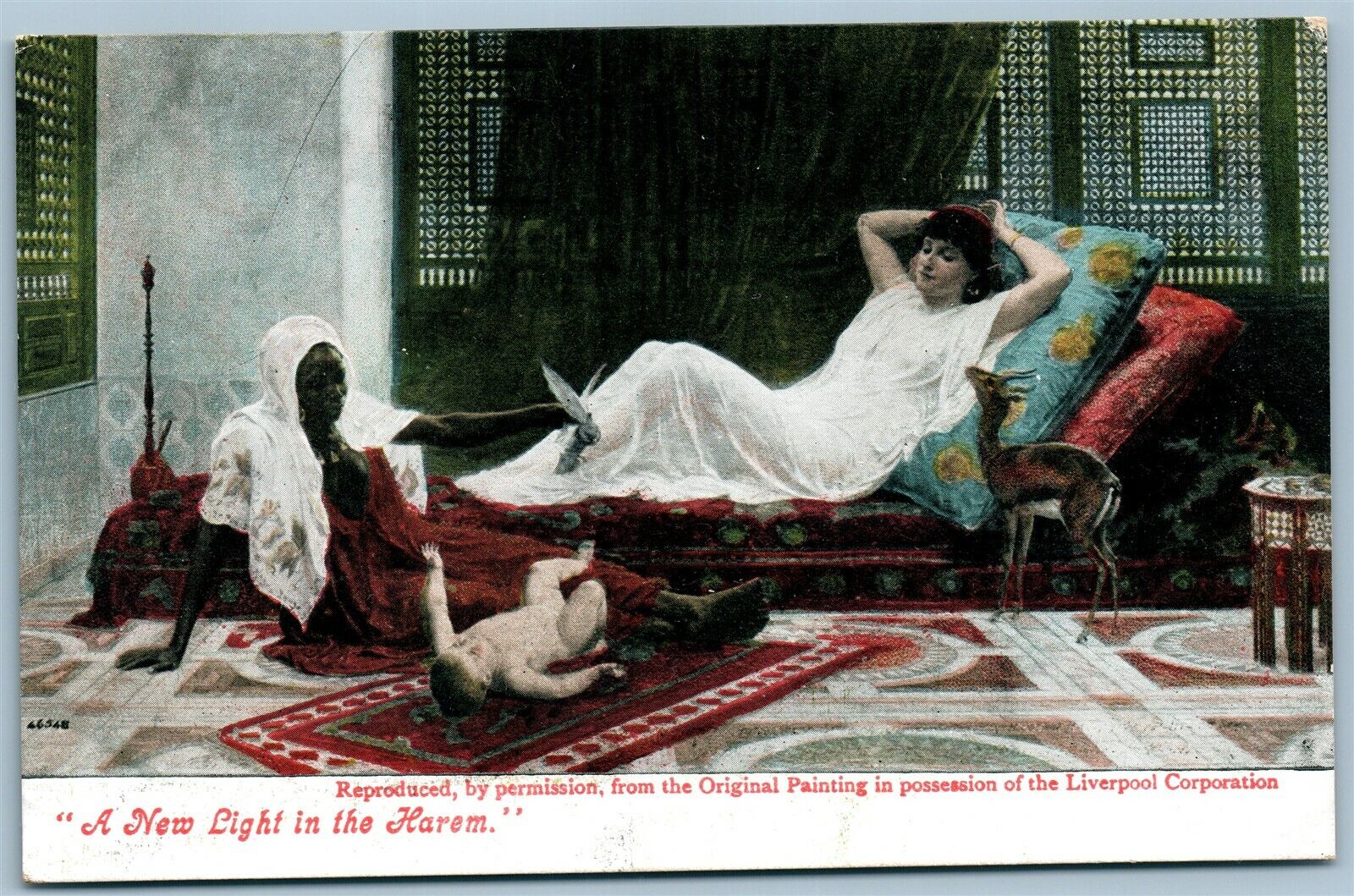 NEW LIGHT IN THE HAREM ANTIQUE POSTCARD